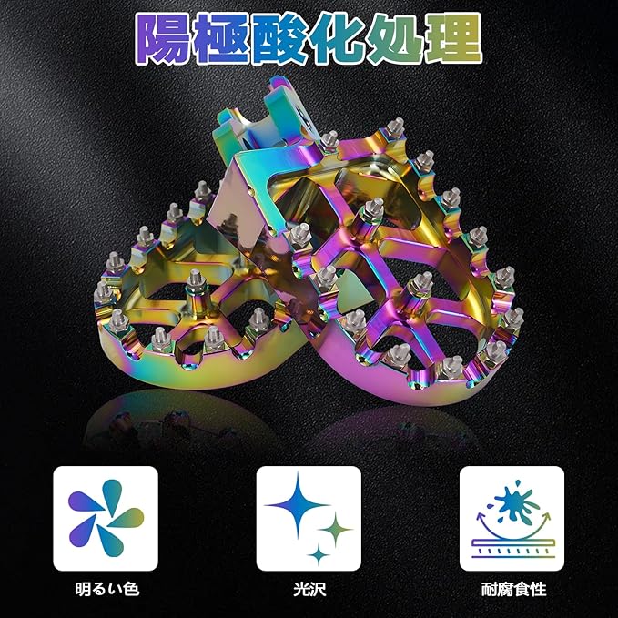 【高強度アルミニウム素材】6061 アルミニウム合金製で軽量かつ高強度。変形や腐食に強く、長期間の使用にも耐えます。バイク フットペグとして耐久性と信頼性を兼ね備えています。