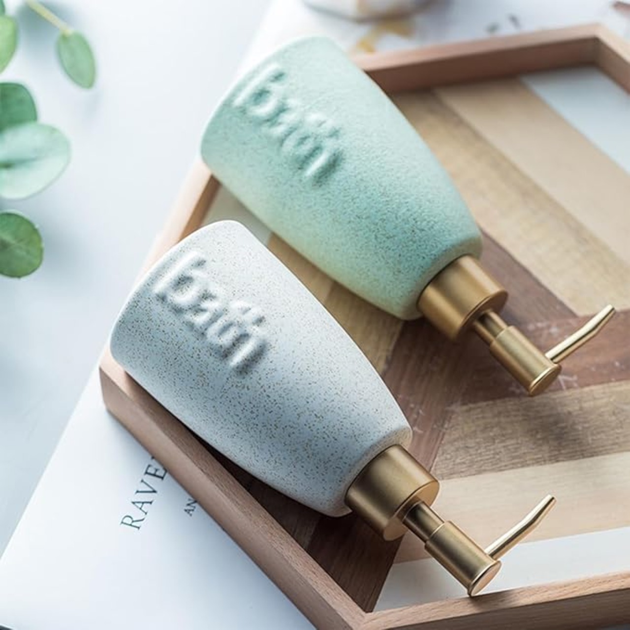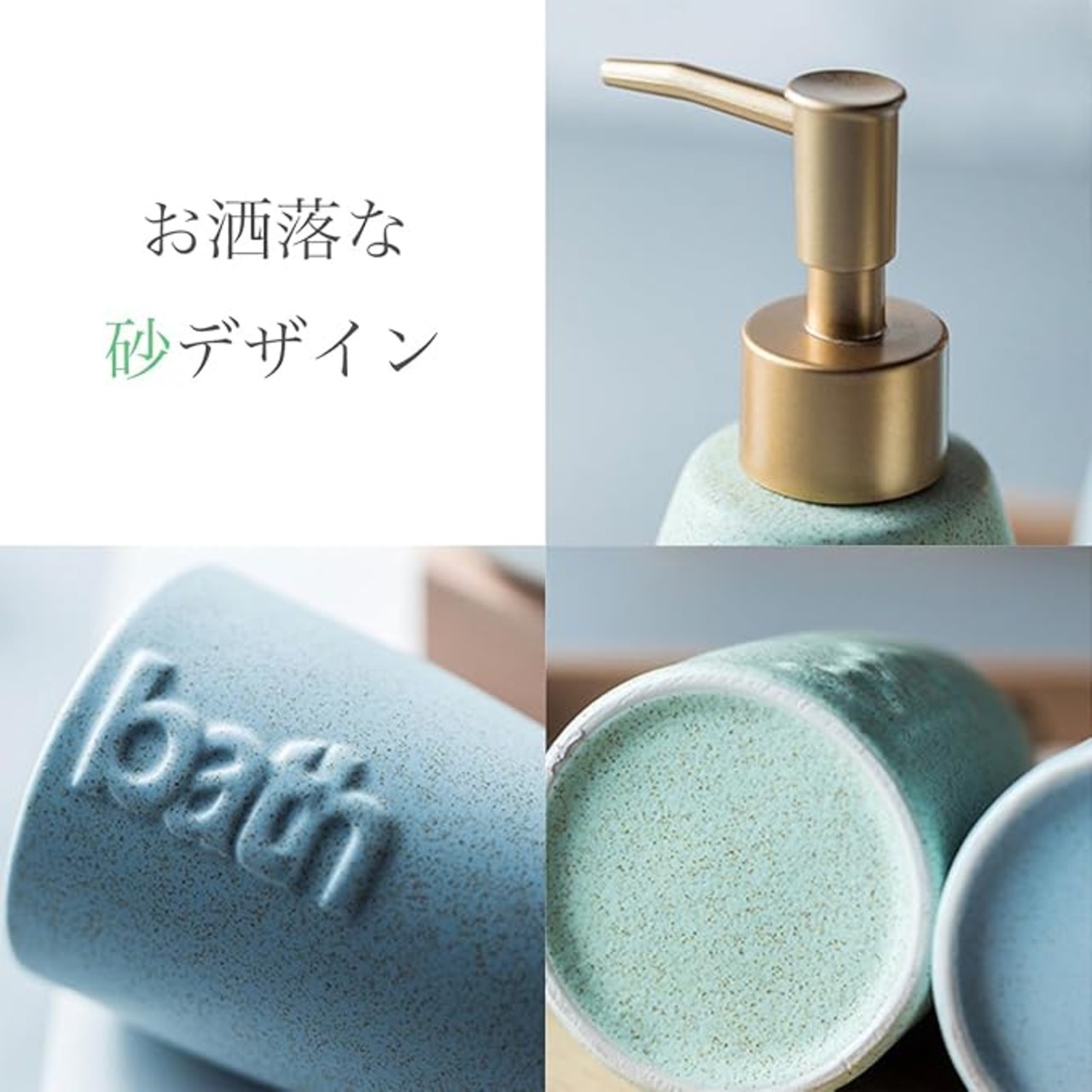 [Queen-b] ソープディスペンサー 砂 おしゃれ 詰め替え 容器 かわいい 手動 液体 石鹸 シャンプー リンス ディスペンサー ボトル 陶器 バスルーム 浴室 (ブルー)
