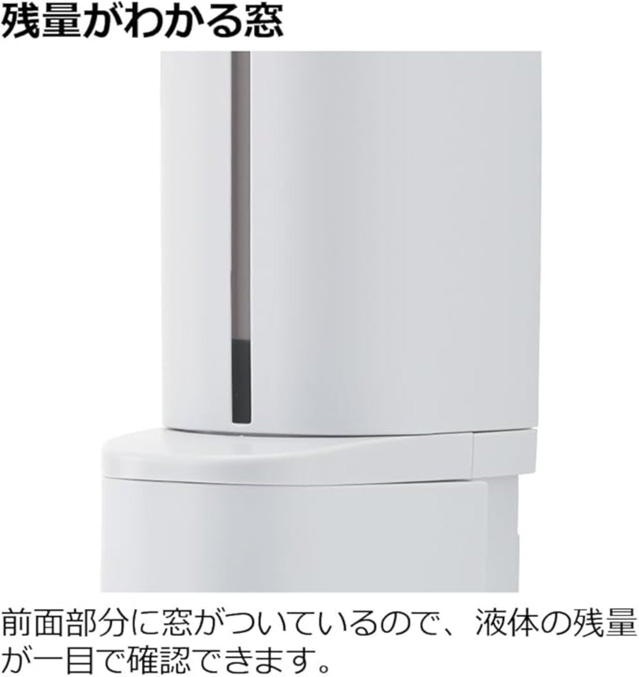 前面部分に窓がついているので、液体の残量が一目で確認できます。