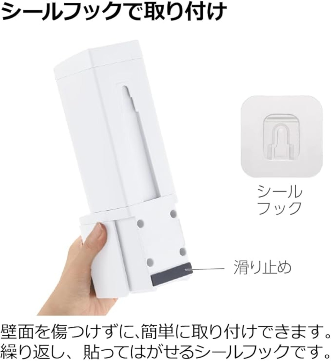 シールフックで取り付ける泡タイプのディスペンサーです。