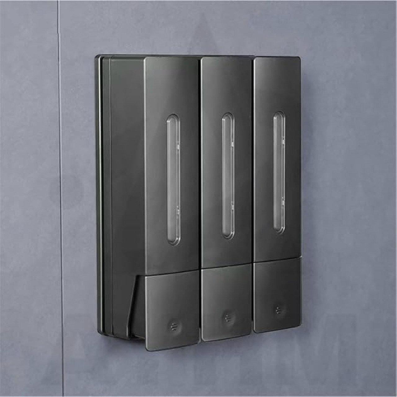 【AYHM】 シャンプーディスペンサー 400ml 3個セット シャンプーボトル 残量確認ウィンドウ付き 壁掛けタイプ シャンプー コンディショナー ボディソープ 簡単補充 防滴設計 (グレー)