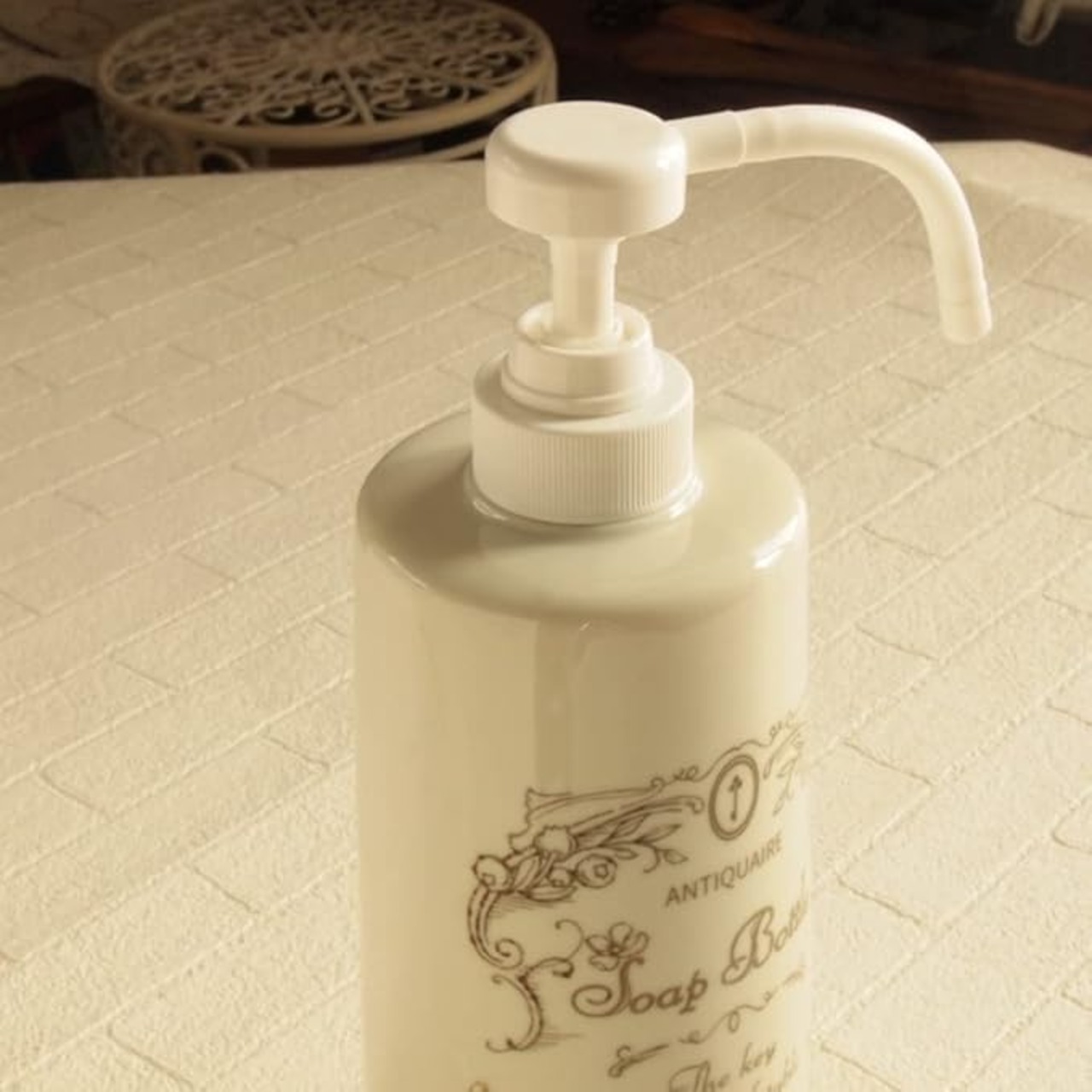 ソープを詰め替えてゴミを減らすエコロジー! 液体石鹸だけじゃなく、シャンプーやリンスを入れてお風呂に、化粧水や乳液を入れて化粧台にと、用途はいろいろ! どこでも絵になるフレンチカントリー風雑貨です。