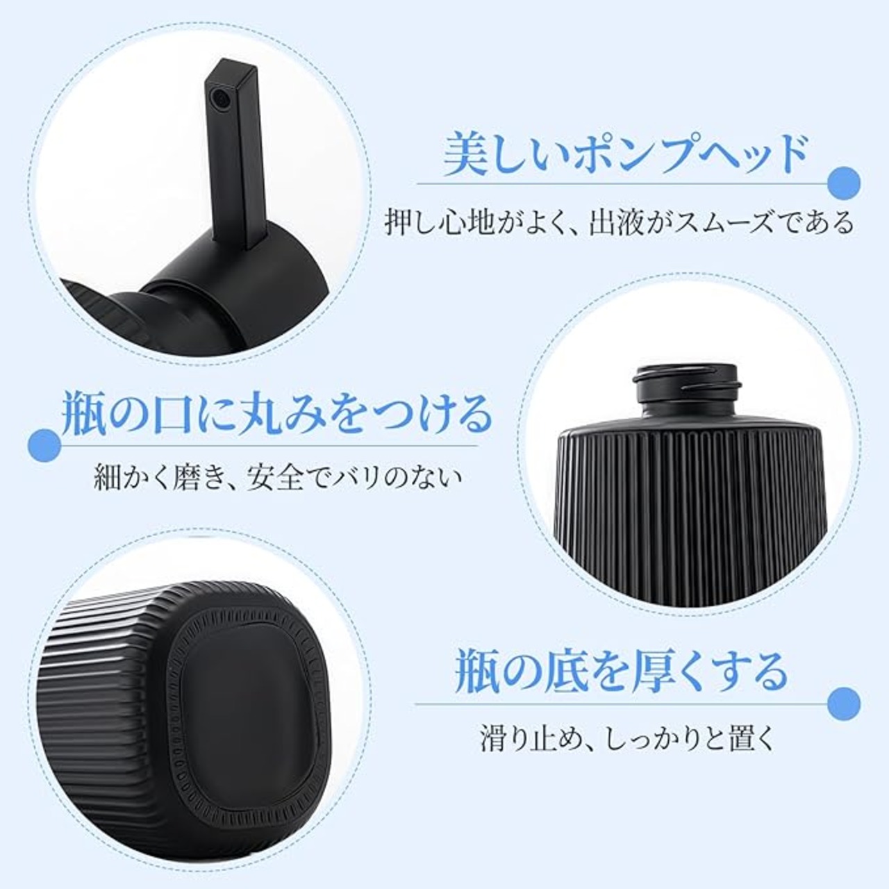 【快適なワンプッシュ設計】 程よい抵抗感のポンプ機構で、ポンプボトルとしての使いやすさを追求。粘り気のあるコンディショナーもスムーズに吸引し、適量がムラなく出る設計で無駄を削減。片手操作に最適な軽やかなタッチを実現し、濡れた手でも確実に操作可能。詰まりにくいノズル構造が最後の一滴まで快適な使用感を約束します。