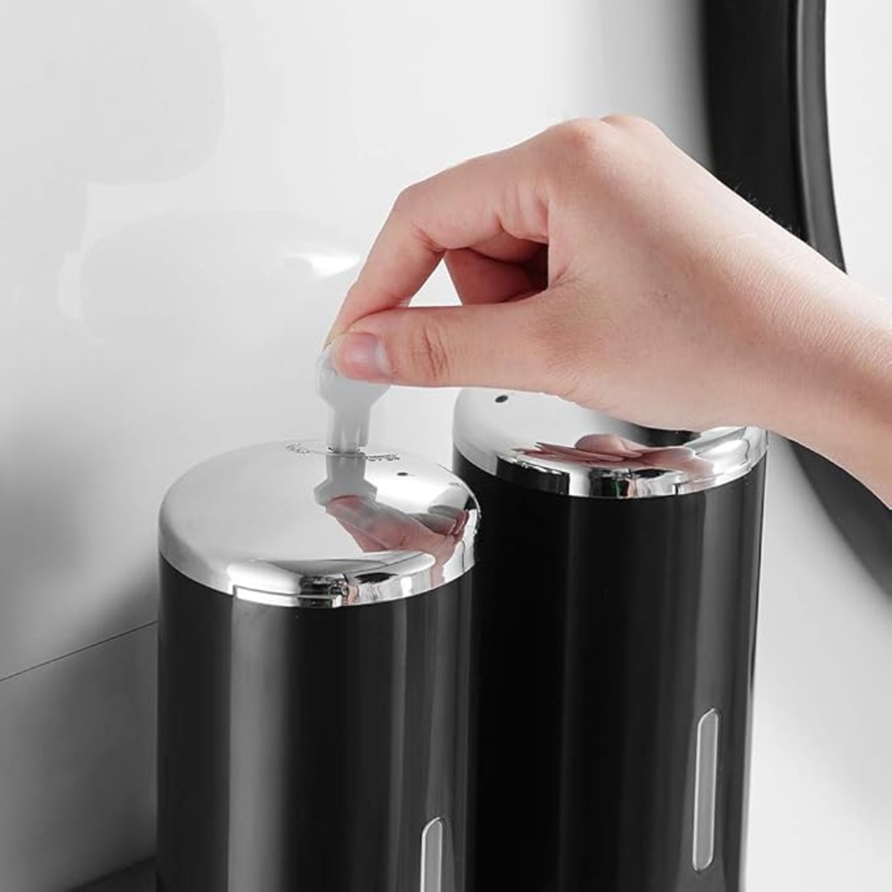 tropical ソープディスペンサー 壁掛け式 シャンプー ボディーソープ 浴室 バスルーム シャワーディスペンサー シルバー 1000ml 2連 (黒)