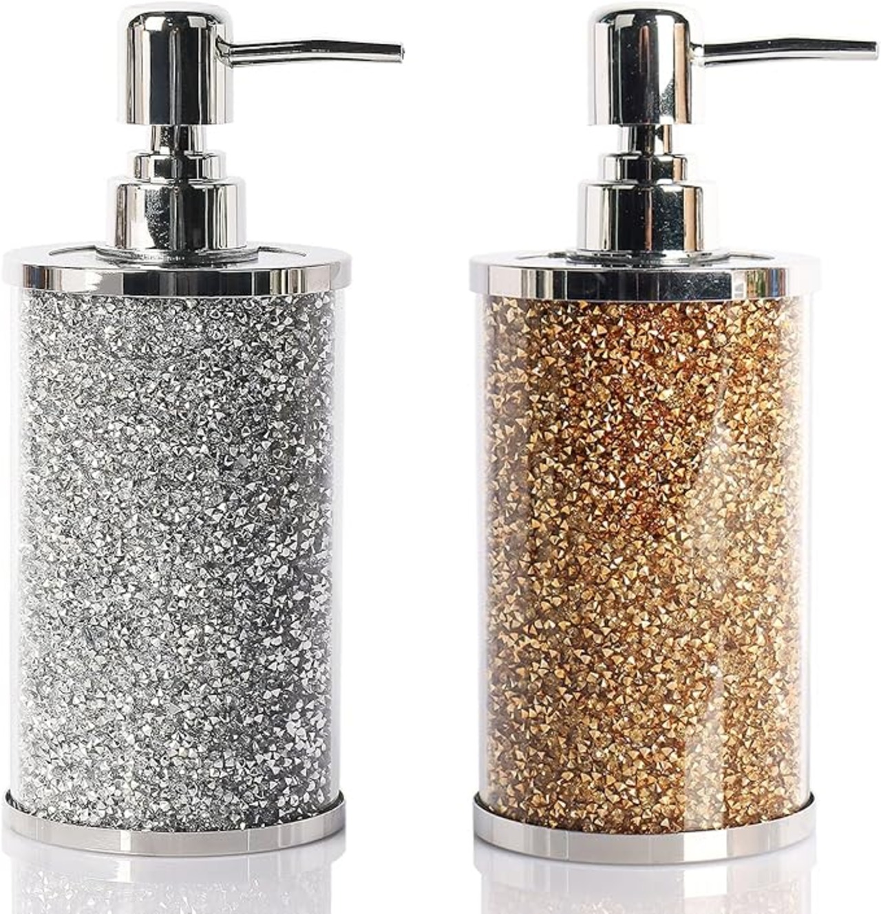 【Home Essentials】ハンドサニタイザーソープディスペンサーは、カウンタートップ、バスルーム、オフィスに設置できます。 ローションソープディスペンサーをデコレーションとして使用することもできます。 光の下でキラキラと輝きます。 バスルームや化粧台用の本当に素晴らしいアクセサリーです。