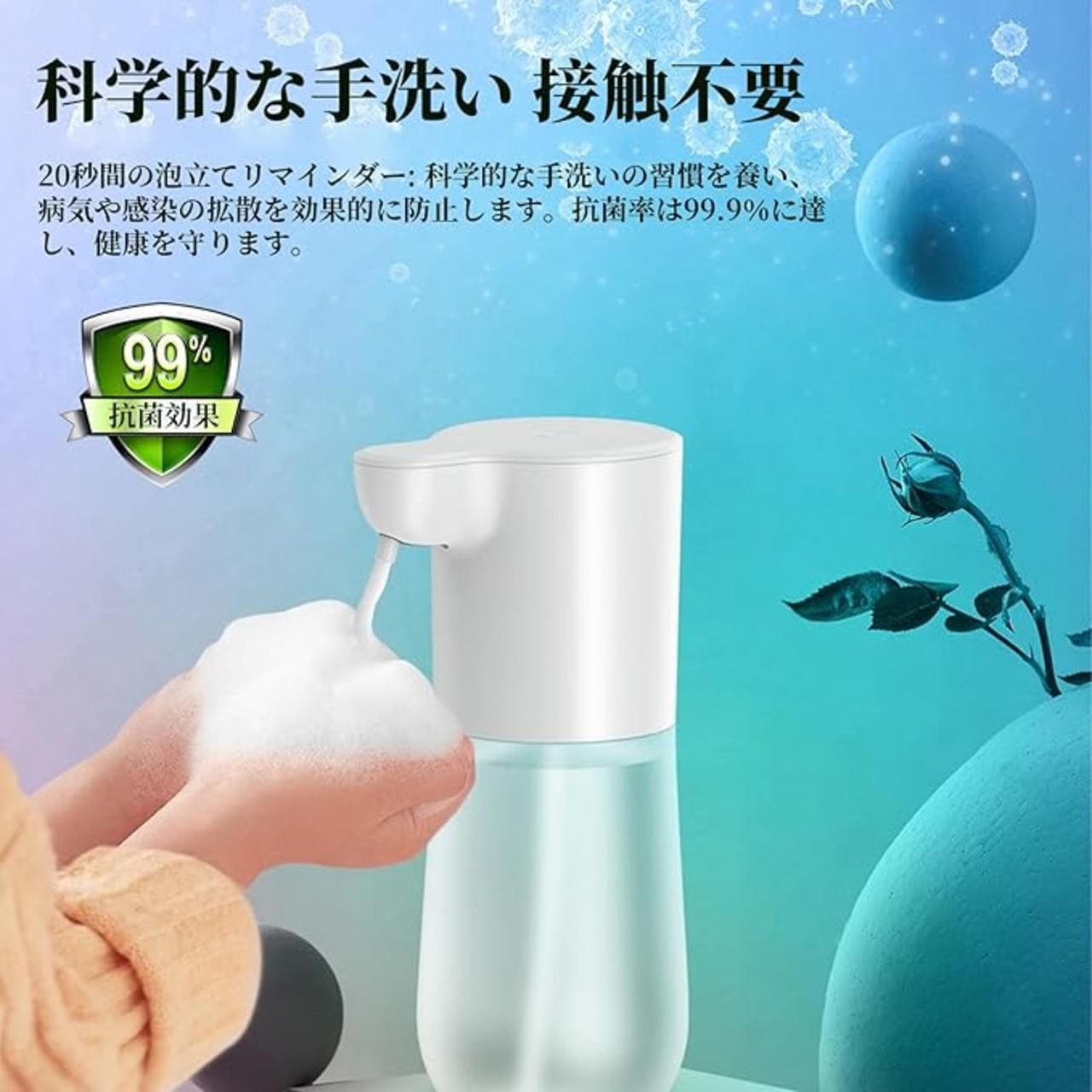 「衛生的に手洗いができる」:自動 ソープディスペンサーは、手をかざすだけで自動的に泡が出るため、手を濡らすことなく衛生的に手洗いができます。