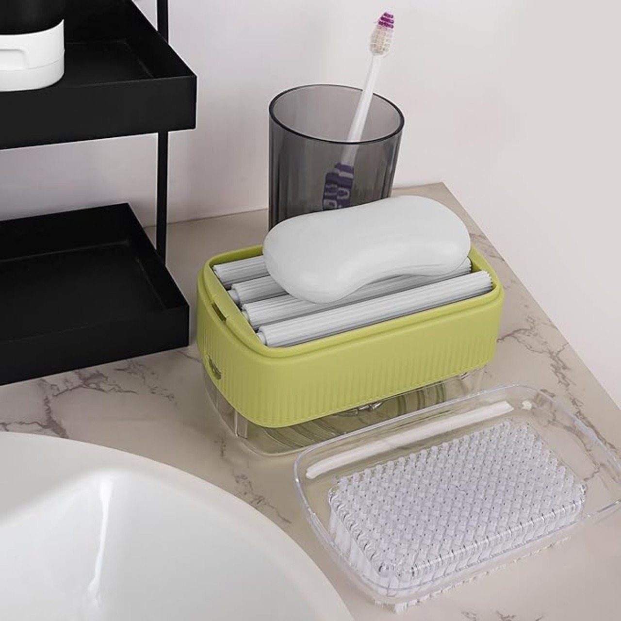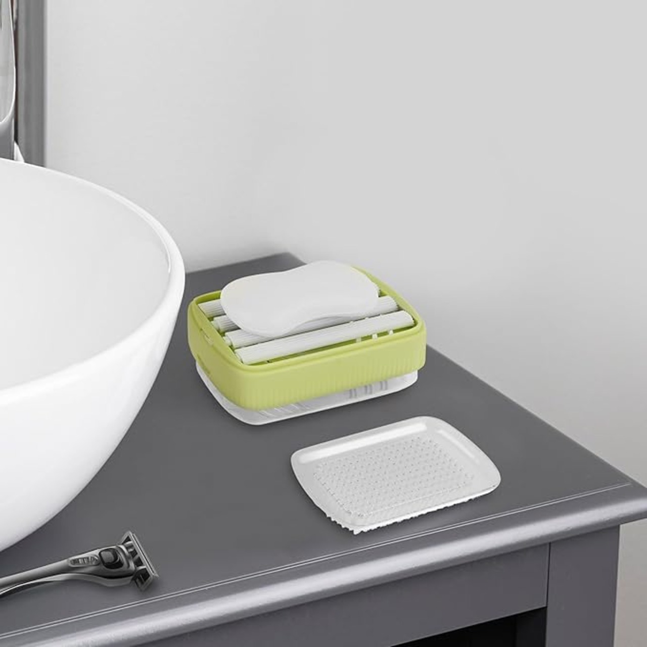 JANKOW 発泡 ソープボックス クリーニング ブラシ付き ソープトレー 多機能 石鹸ケース 再利用可能 石鹸ホルダー 家庭やランドリー用 (グリーン)
