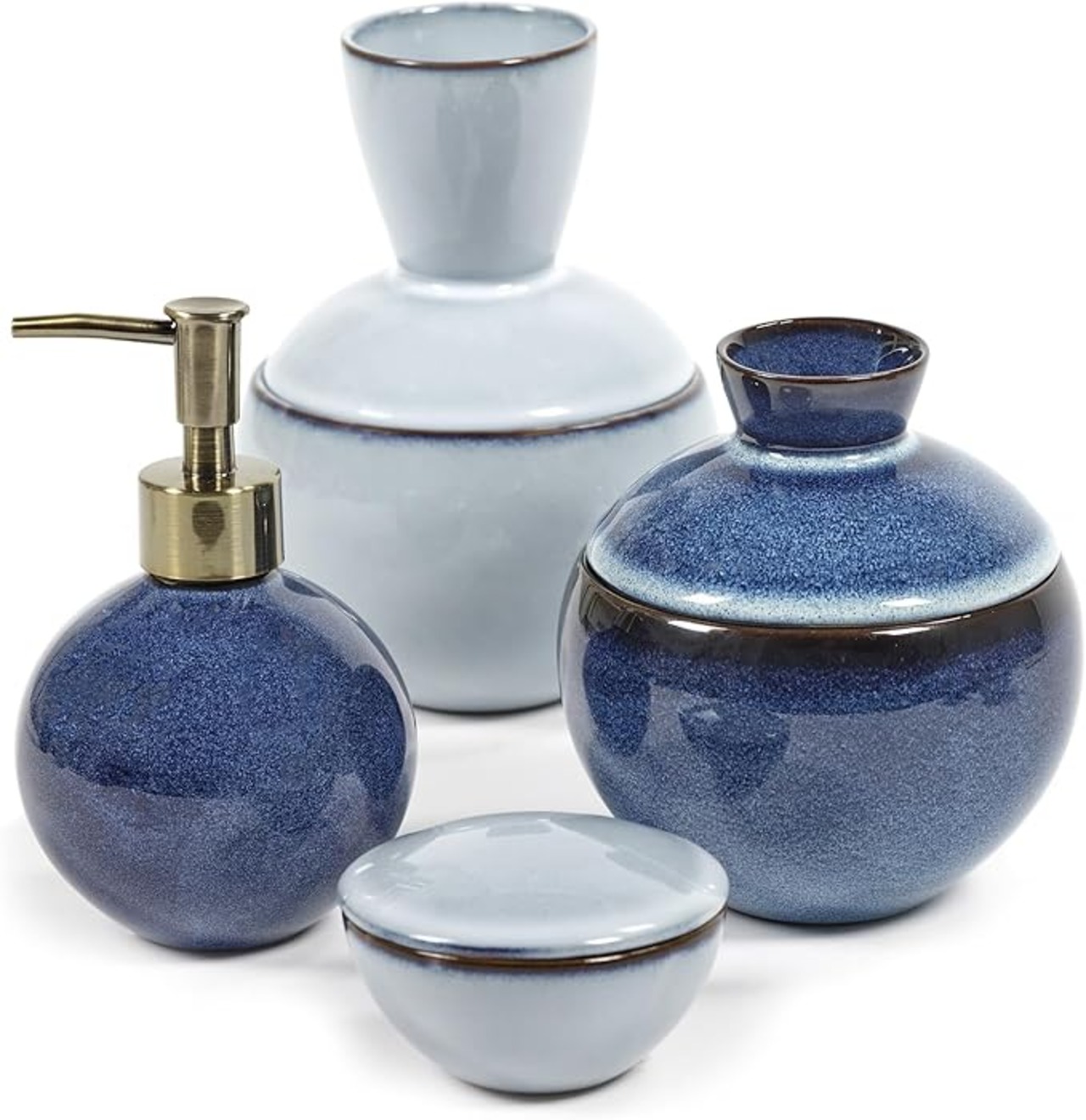 【上品な青い釉薬が施された仕上げ】ネサンのお気に入りである青い釉薬と、静かで洗練されたデザインが空間にしっくりと馴染み、キッチンやバスルームでその存在感を発揮します。