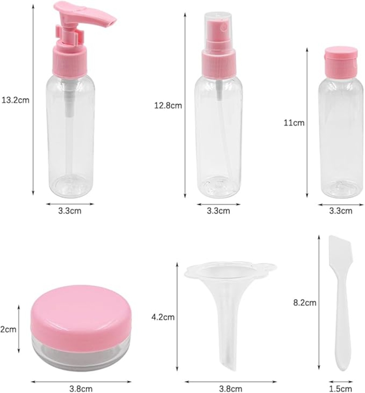 高品質プラスチックで作られたNUZAMASトラベル詰め替えボトルセットのご紹介です。 このセットには、小じょうご(4cm)、小スクープ(7.5cm)、30MLローションボトル(14.5cm)、30MLスプレーボトル(13cm)、10gクリームジャー(2cm)が含まれます。 セット総重量は138gです。 これらの詰め替えボトルは耐久性と再利用性を考慮して設計されており、漏れ防止スナップリング設計が特徴です。 コンパクトなサイズなので、バックパック、化粧ポーチ、財布に入れて持ち運ぶのに便利です。 このセットは、フェイシャル製品、ローション、手の消毒剤など、さまざまな液体やクリームの保管に最適です。 持ち運びやすいボックスにすっきりまとめたポータブルボトルなので、旅行や出張、アウトドアなどにも最適です。 愛する人への素晴らしい贈り物にもなります。