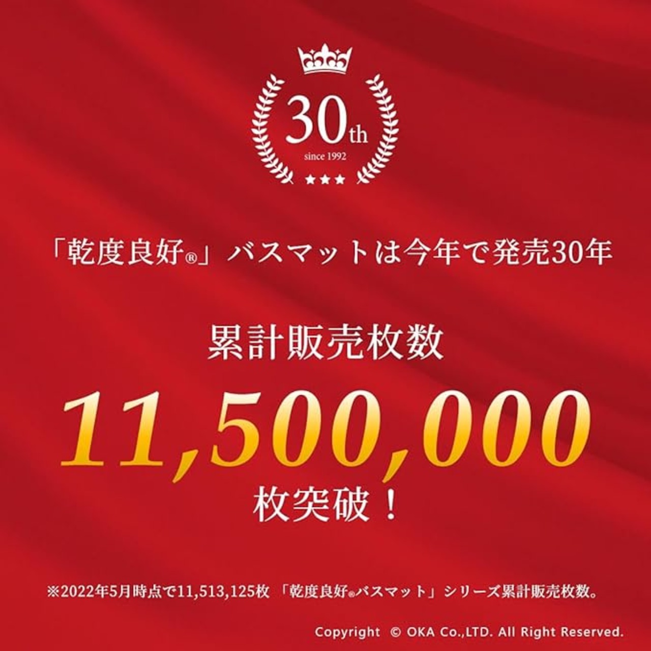 オカ株式会社が独自開発した特殊構造繊維「乾度良好(かんどりょうこう)」は25年を超えるロングセラーのバスマットです。