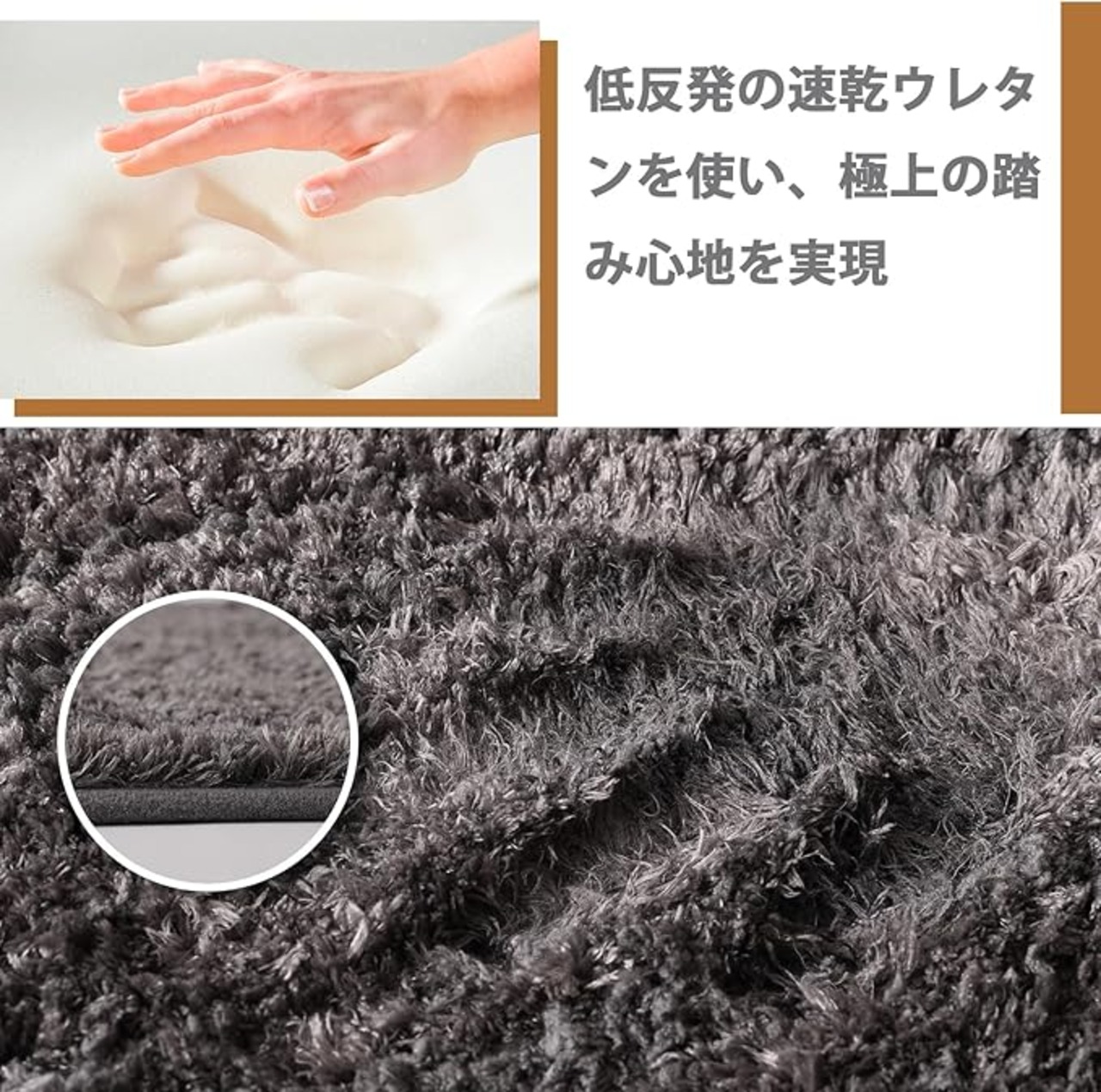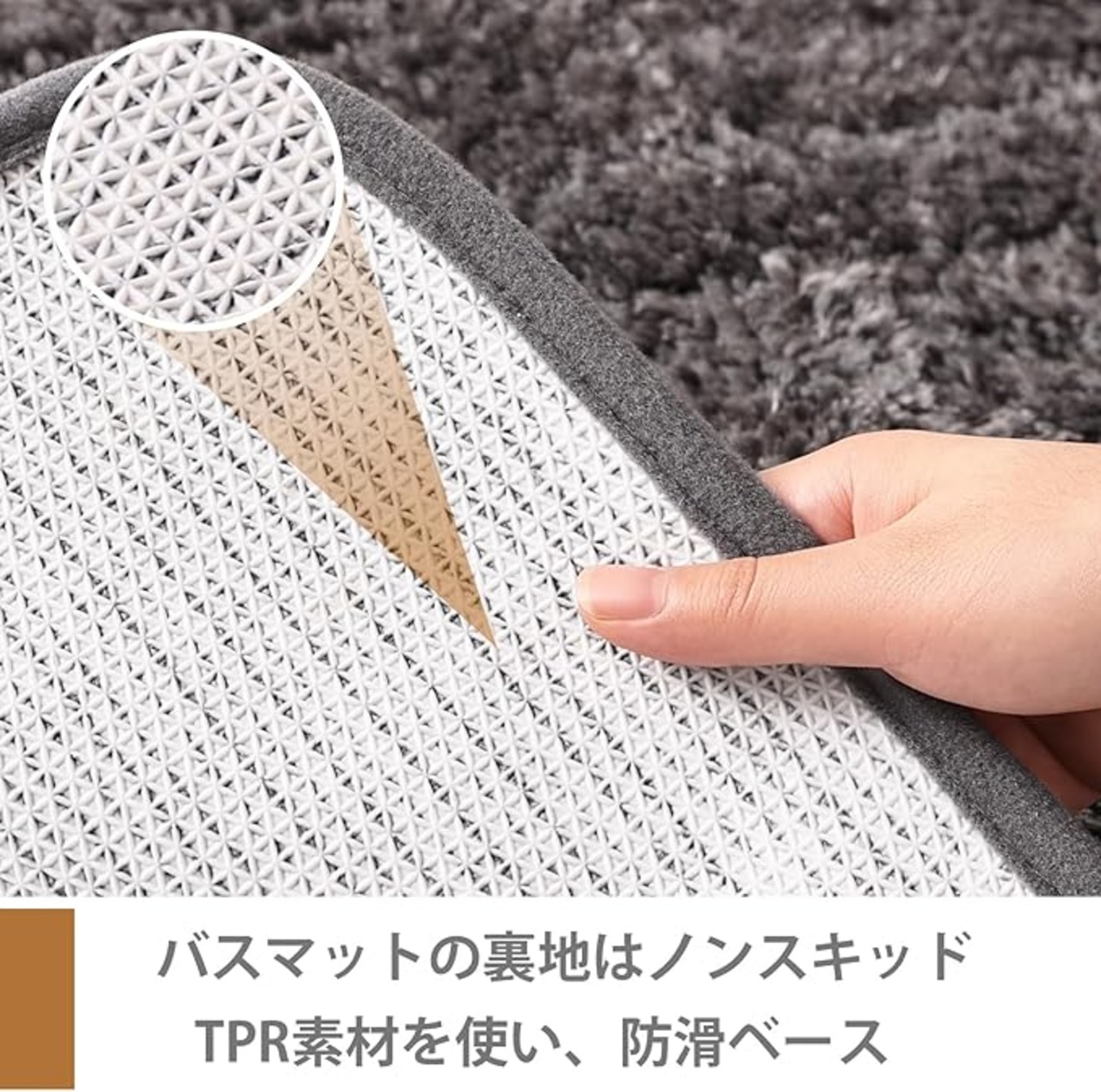 【ふわふわ肌触り】バスマットの表地はマイクロファイバー素材を使用、柔らかな肌触り、濃密な長毛が足を包み込むような踏み心地、雲の上を歩くような質感で、足を非常に柔らかくサポートします。疲れた足を落ち着かせてくれます。
