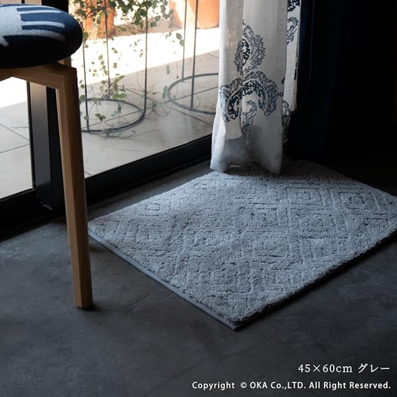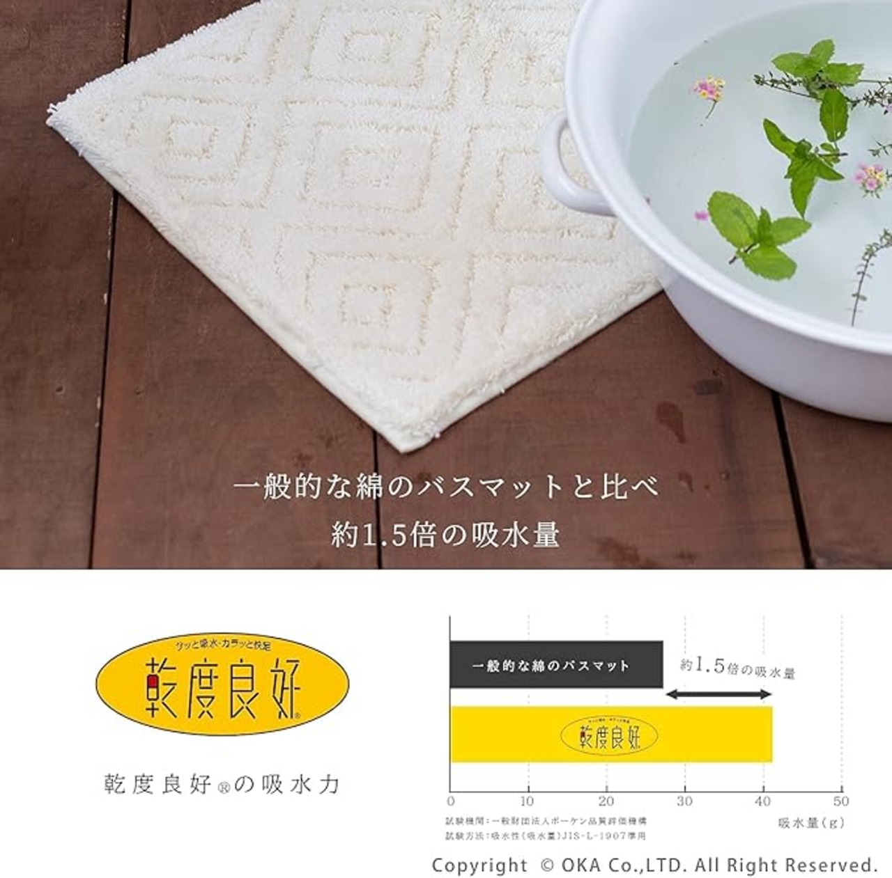 オカ(OKA) 乾度良好ピュール バスマット 約45cm 60cm グレーベージュ (お風呂マット 大判 浴室 おしゃれ 洗面所 足ふきマット 抗菌 防臭 吸水 速乾 洗える)
