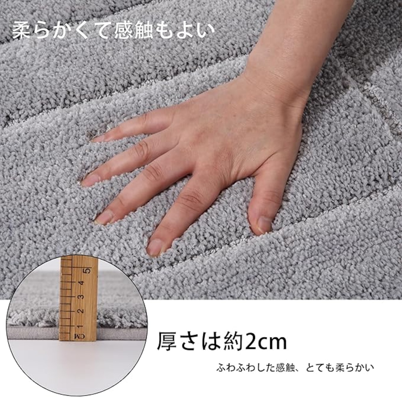 【吸水力・速乾性】バスマットの表面はふわふわ触感で濡れた足で立っても、すぐに吸収してくれて使いやすいです。