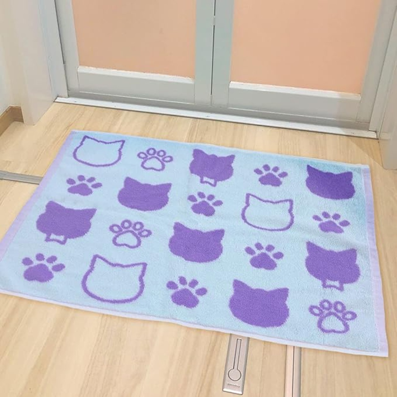 綿100%の、タオル地のバスマットです。ネコ柄、ドット柄、花&小鳥柄の3枚セットです。