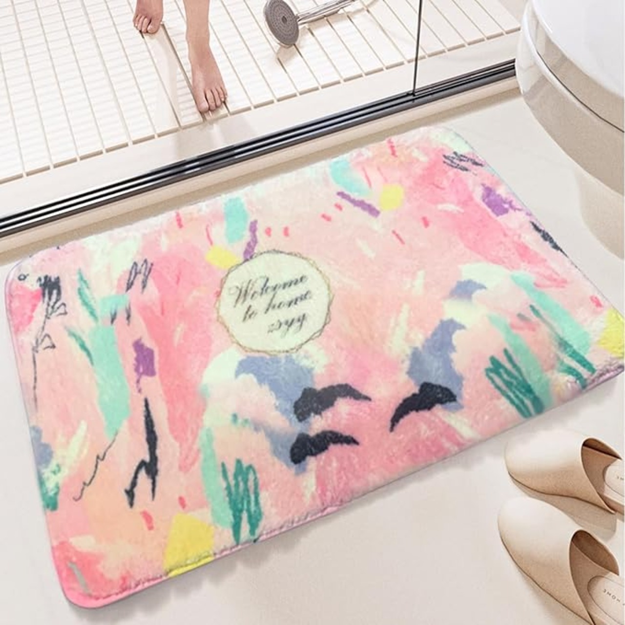 Vivi Bakie バスマット 吸水速乾 足ふきマット 滑り止め お風呂マット 厚手 ふわふわ 快適 玄関マット 暖かい おしゃれ 風呂マット 丸洗い可能 40*60cm (ピンク)
