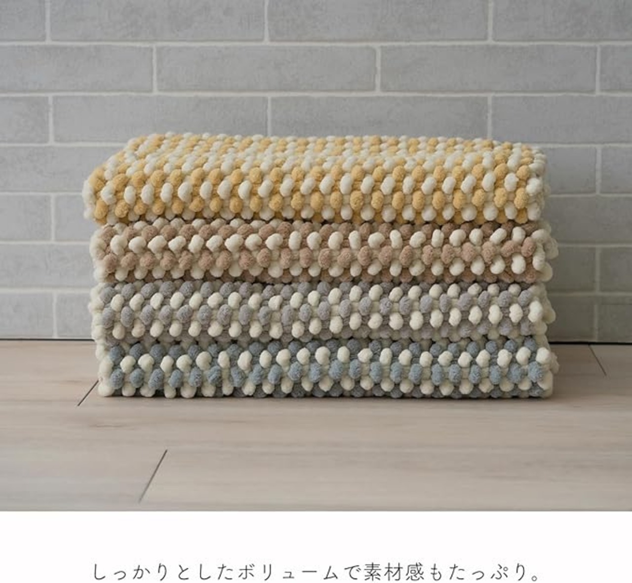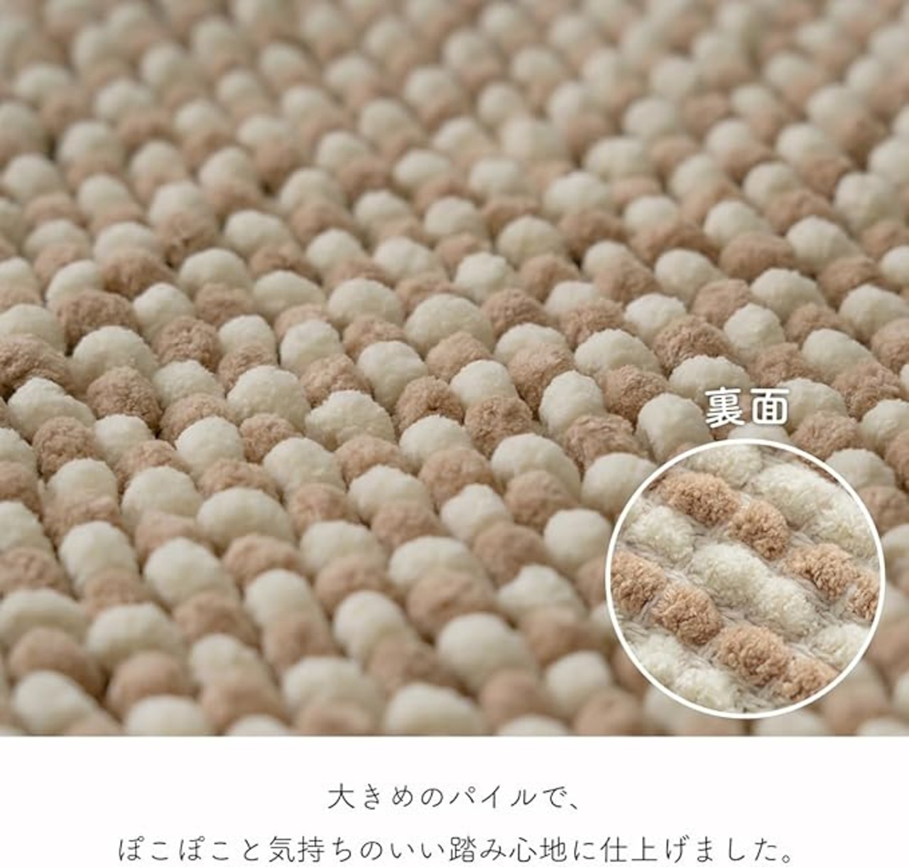 【踏み心地◎】ぽこぽこしたと大きめのパイルで、気持ちのいい踏み心地に仕上げました。しっかりとしたボリュームで素材感もたっぷり。