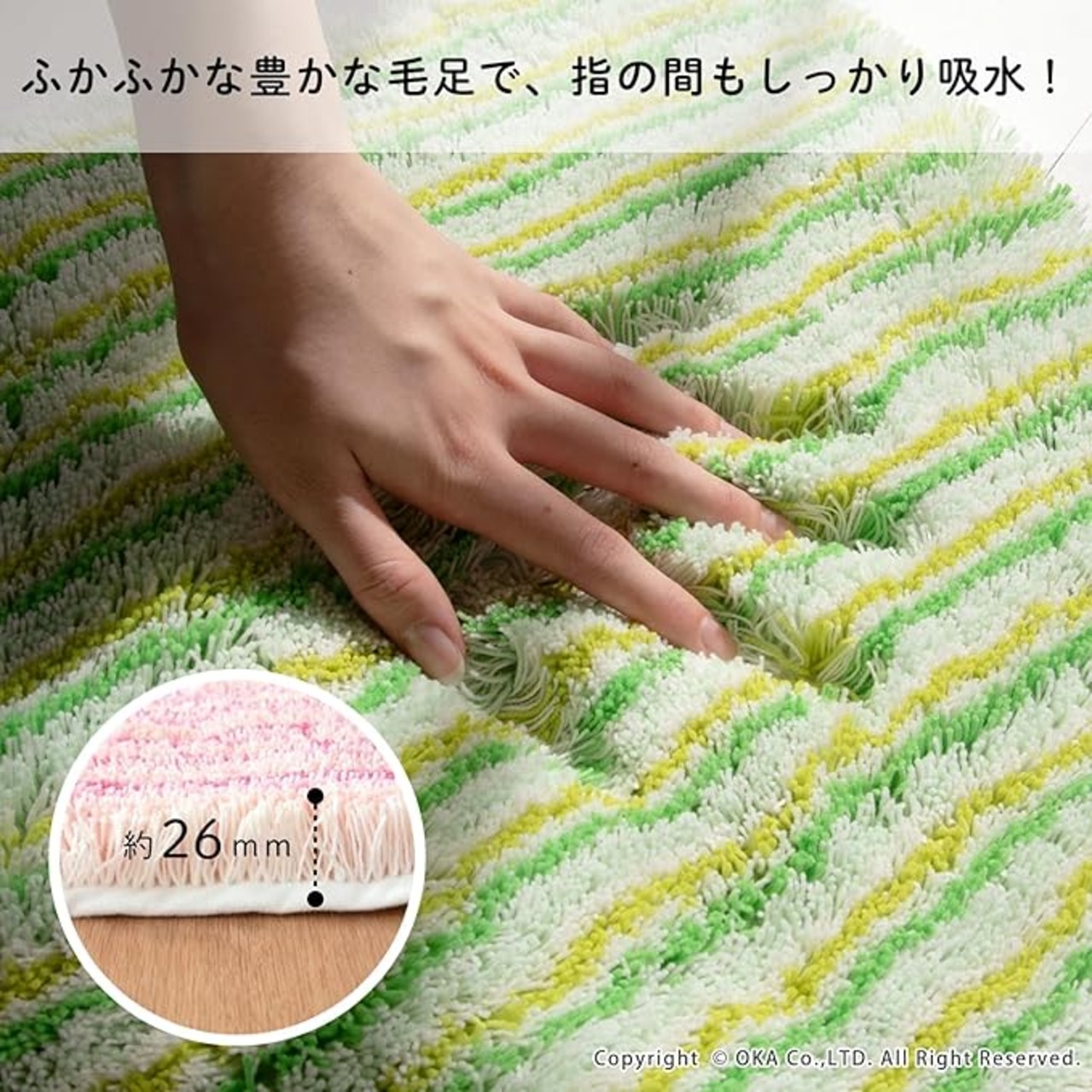 オカ(OKA) 乾度良好バスマット アップフィールド 約40cm 60cm グリーン (吸水 速乾 抗菌 防臭 かんどりょうこう ボーダー)
