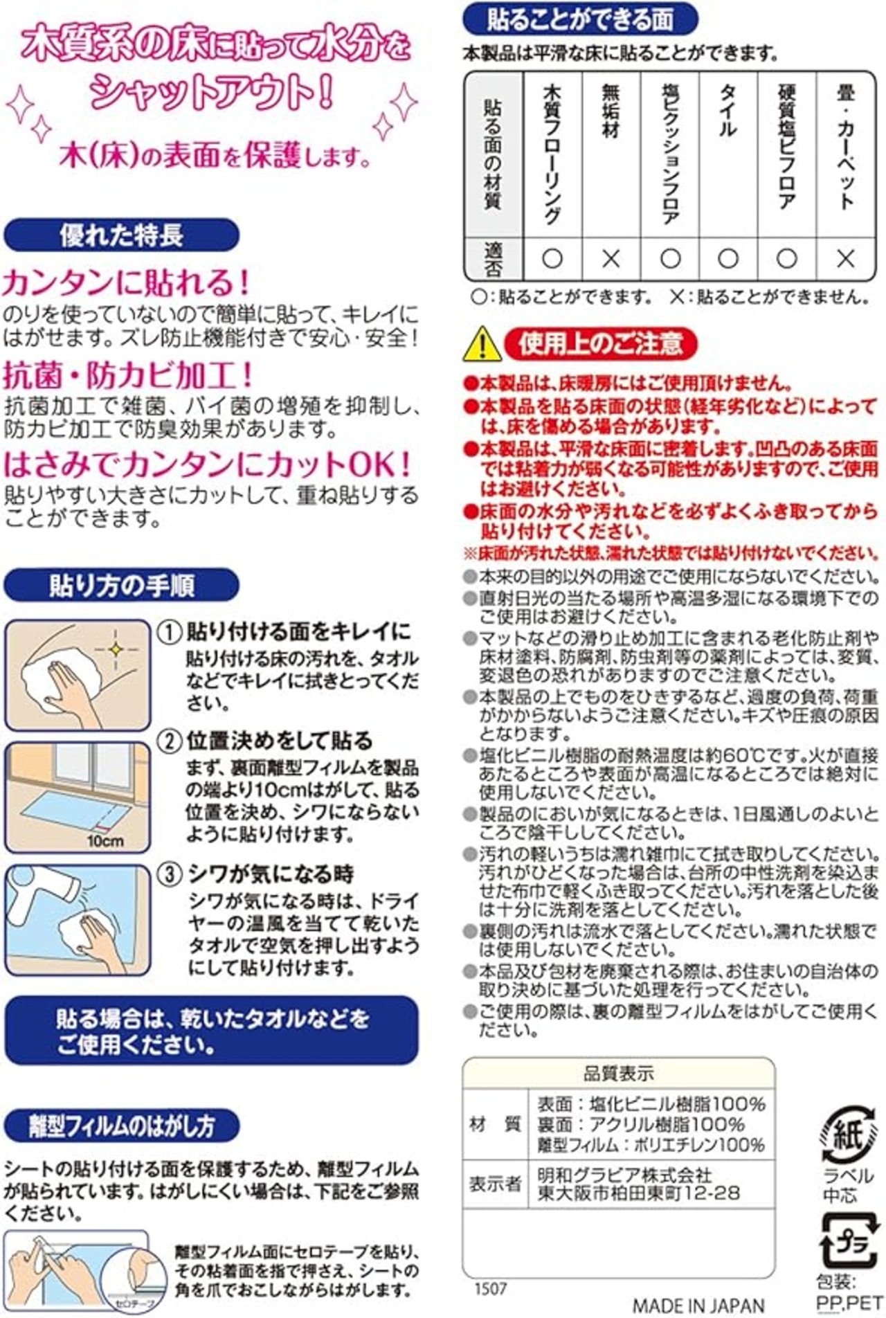 バスマットの下などにお使いください