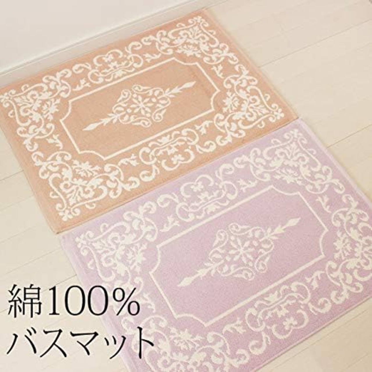 バスマット アラベスクタオル地 バスマット ピンク (ライラック)