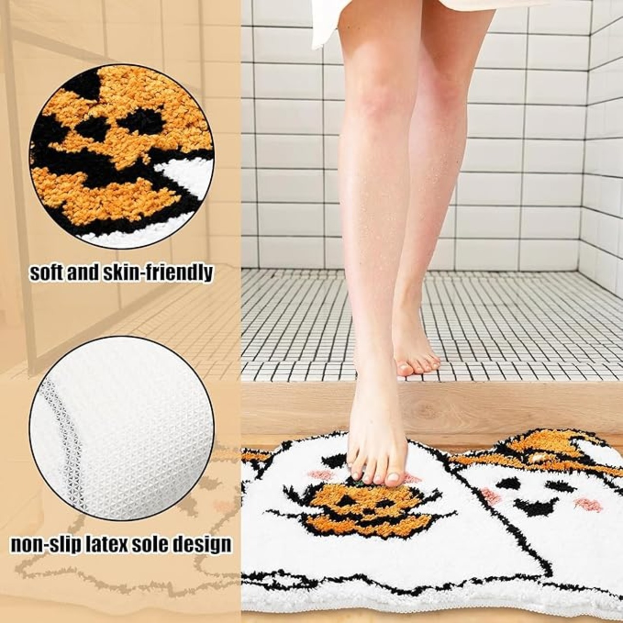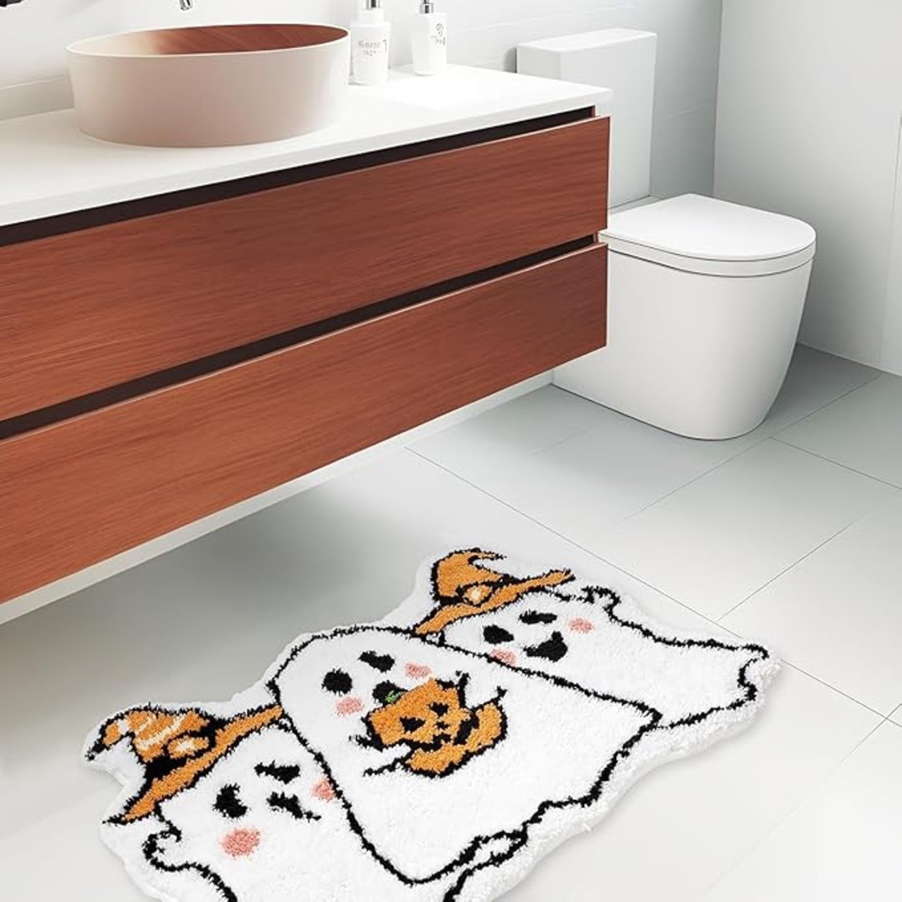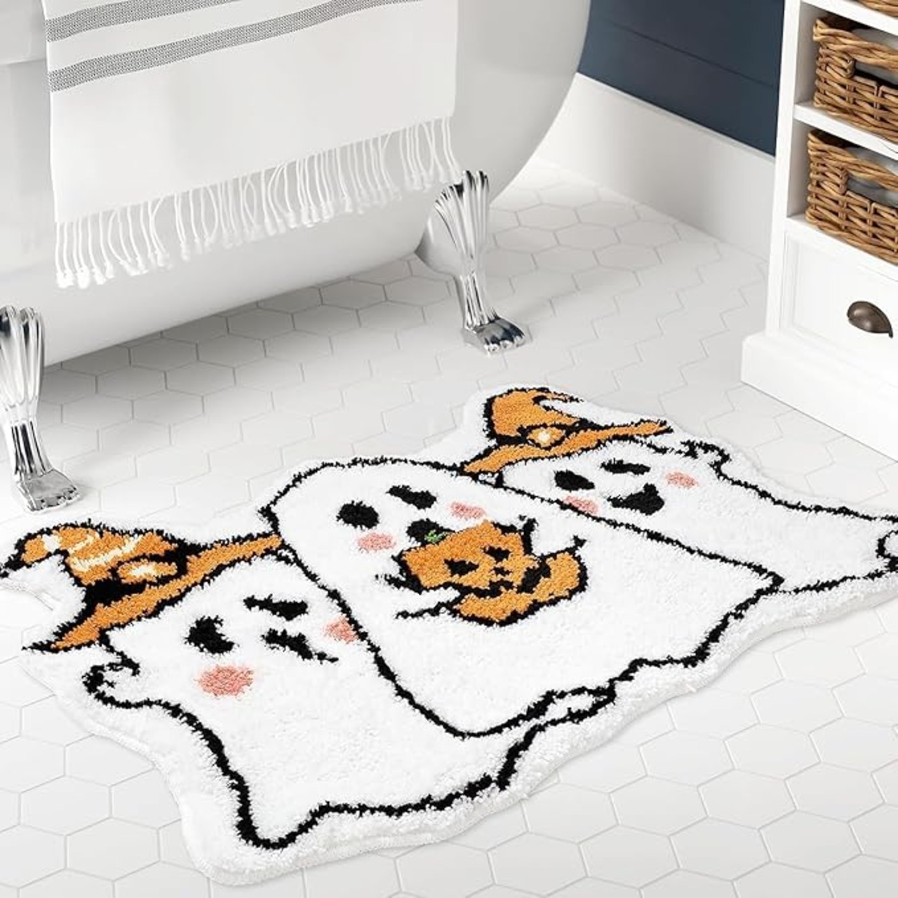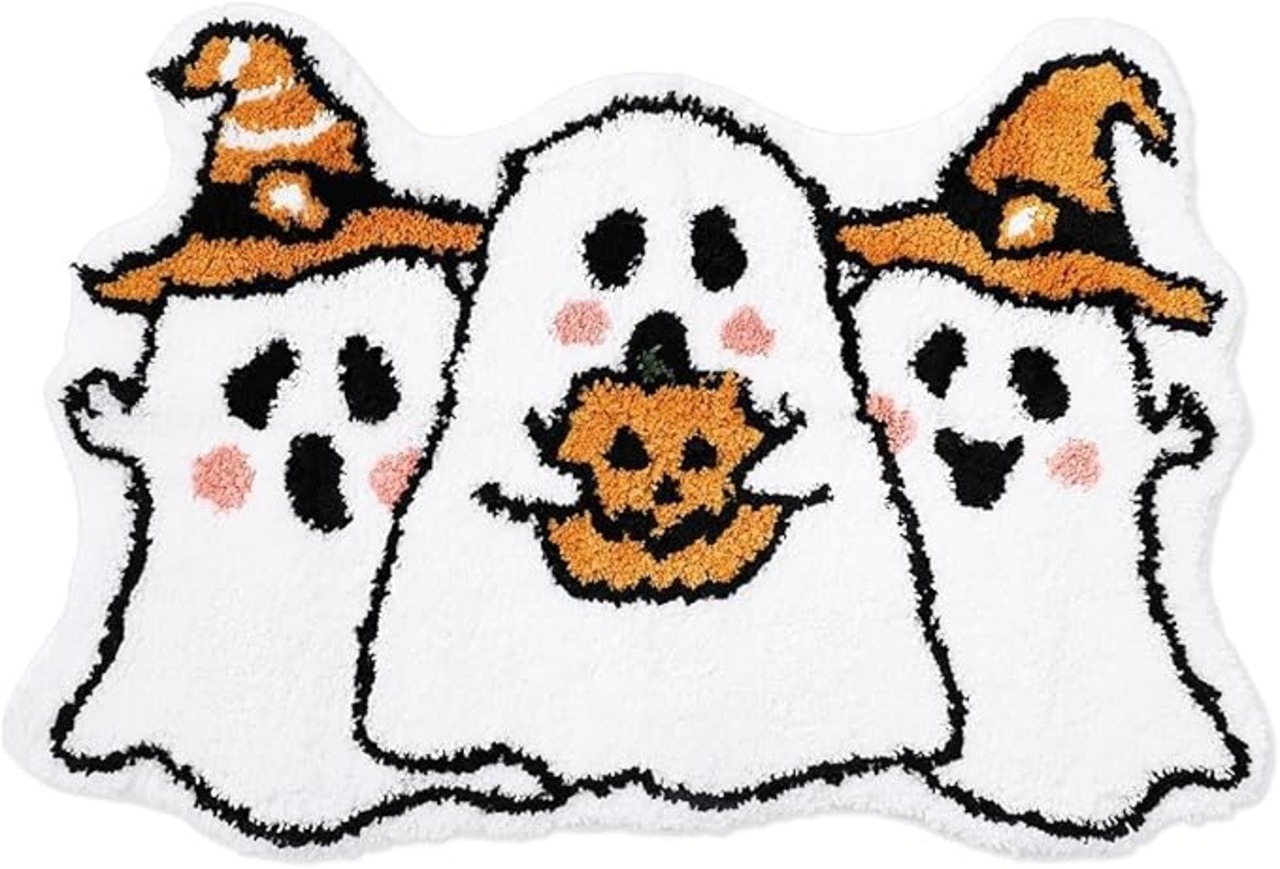 ハロウィン気分を盛り上げる♪ 幽霊柄ふわふわバスマット|吸水速乾・滑り止め付き・丸洗いOK!洗面所やキッチンにも使える万能ラグ