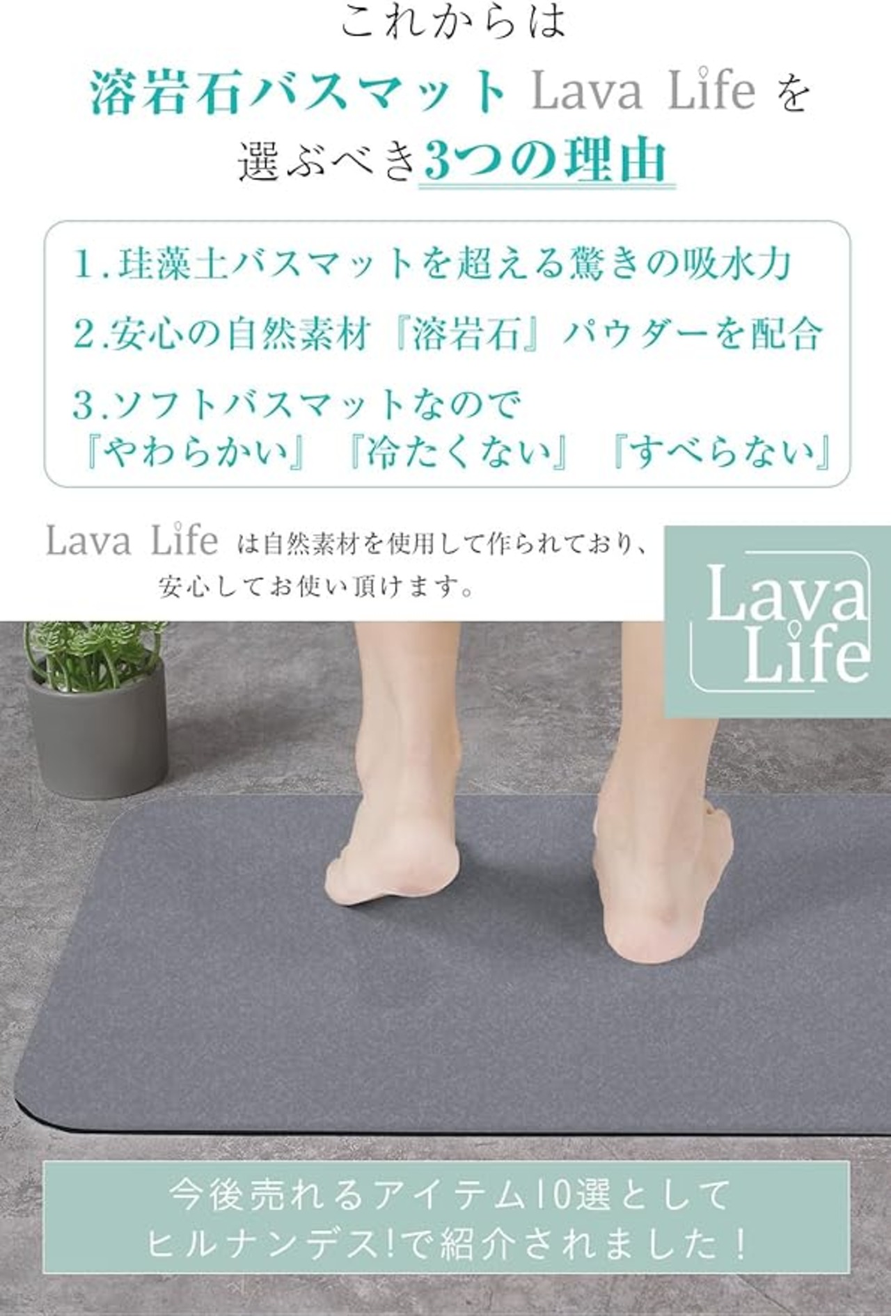 ✅バスマットは次の時代へ。Lava Lifeは次世代の素材”溶岩石(火山岩)”を使ったバスマットです。表面には小さな穴が無数空いており、水分の吸収や放出、消臭の機能に優れています。