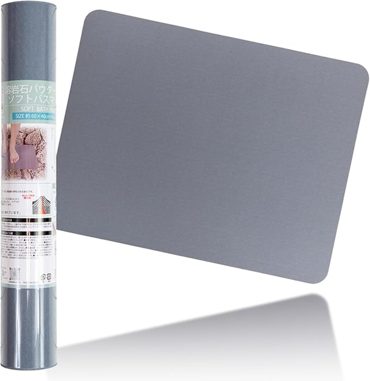 Lava Life 溶岩石ソフトバスマット 速乾 珪藻土越える吸水スピード OLA-SBML025 GY (L, グレー)