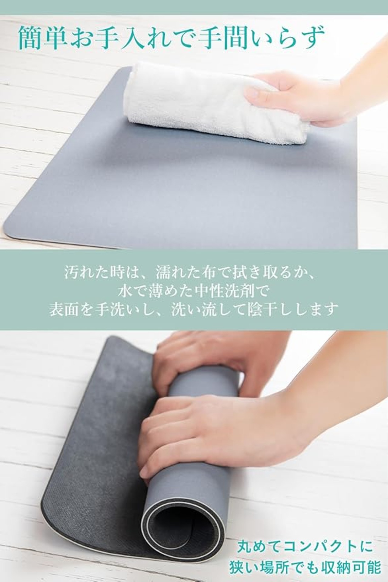 ✅簡単お手入れで手間いらず。汚れたら濡れた布で拭き取るか、薄めた中性洗剤で表面を手洗いし、洗い流して陰干しでOK!