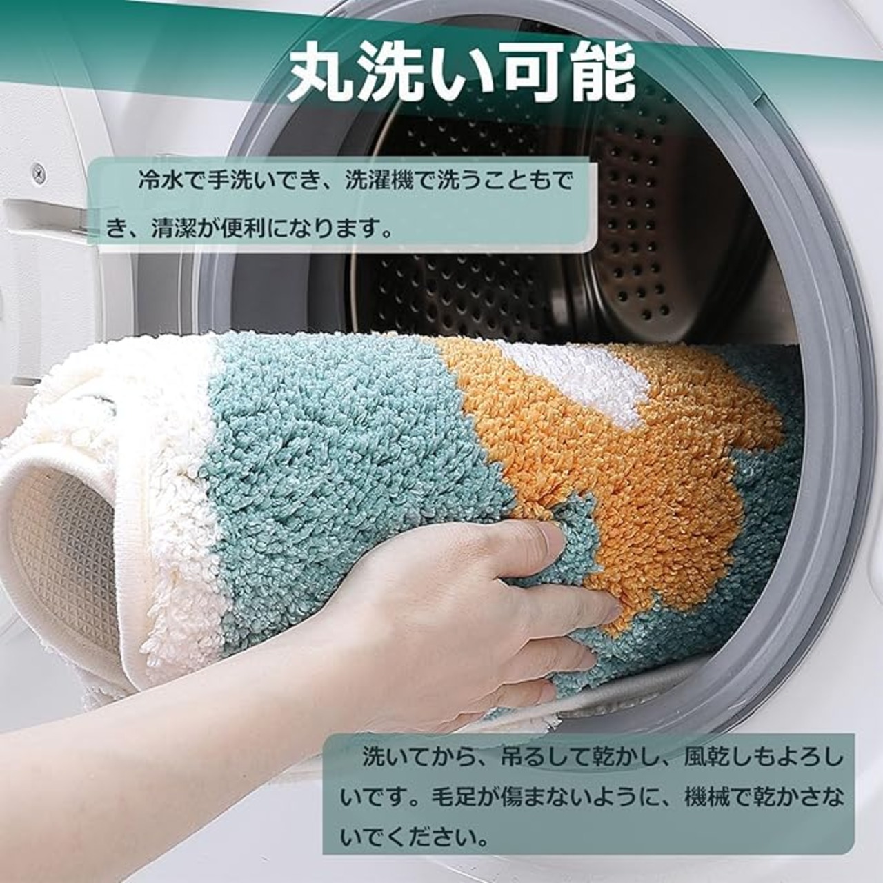 「抗菌仕様&丸洗いできる」浴室足ふきマットは、よりよい清潔さを長期保持のために、抗菌のナノメートルで加工を採用されて、髪の毛などを掃除機で簡単に掃除できます。そして、冷水で手洗いができ、洗濯機で洗うこともできます。清潔も便利になります。洗いてから、吊るして乾かし、風乾しもよろしいです。