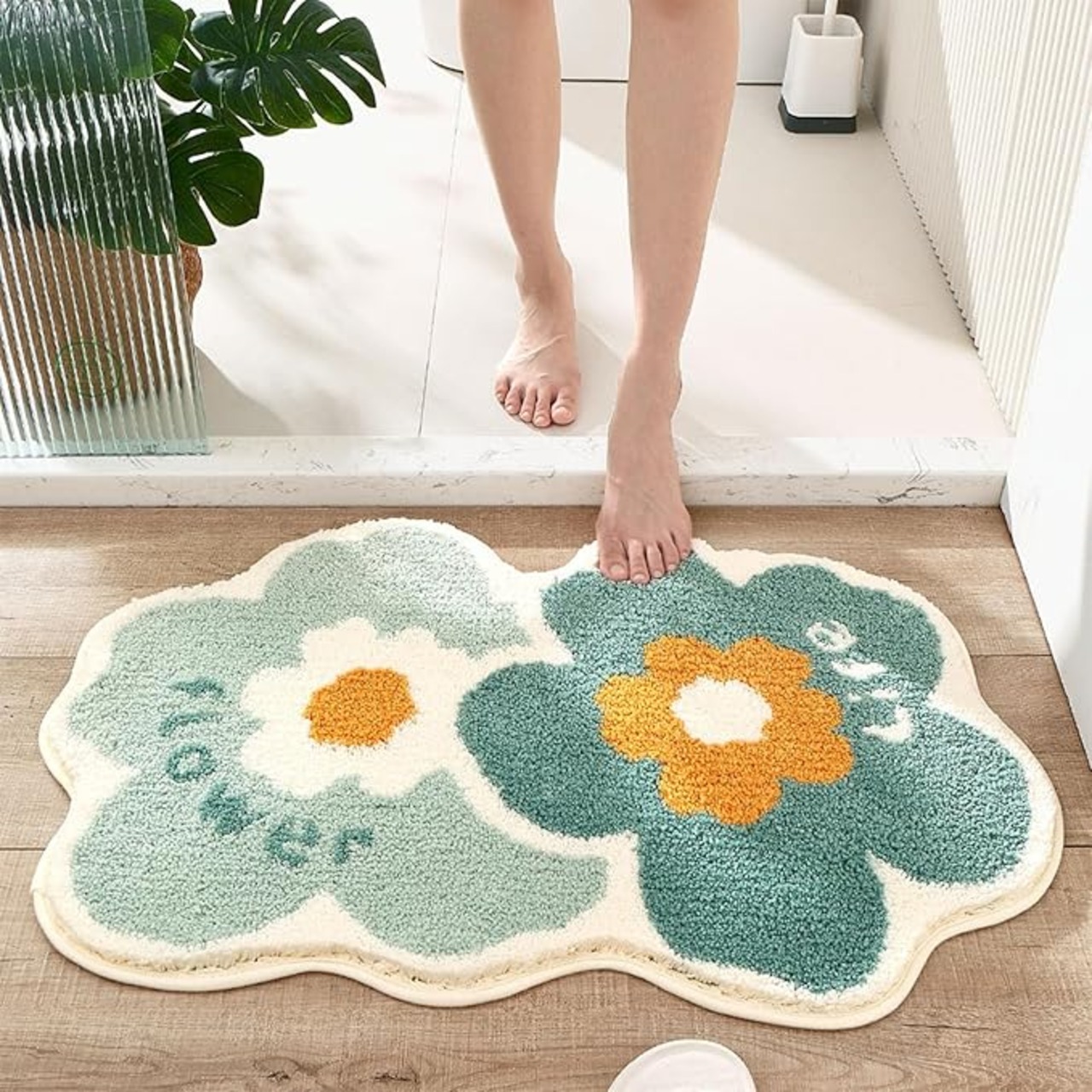 VDVSPMPN バスマット 速乾 足拭きラグ お風呂マット 滑り止め 洗面所マット 厚手吸水 足ふき 玄関 かわいい花柄 バスマット ふわふわ 洗える 柔らか肌触り 抗菌 おしゃれ 丸洗い可能 脱衣所 浴室 洗面所に適用 (花柄2, 45 65cm)