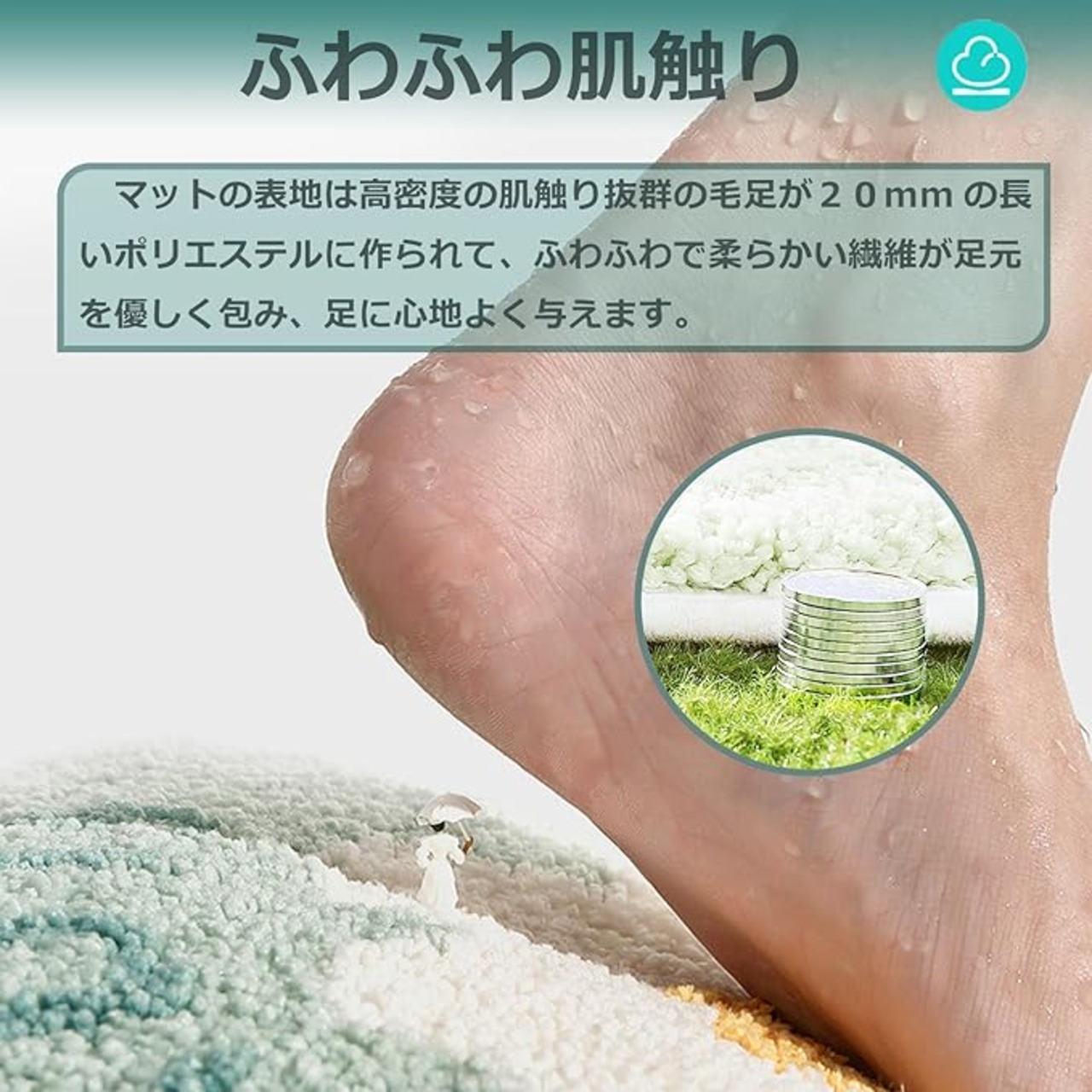「肌触り抜群の柔らかさ」足拭きマットの表地は高密度の肌触り抜群の毛足が20mmの長いポリエステルに作られて、ふわふわで柔らかい繊維が足元を優しく包み、足に心地よく与え、簡単に摩耗にくく、冬は暖かい感じがし、夏にもさらさらで快適、一年中に使えます。