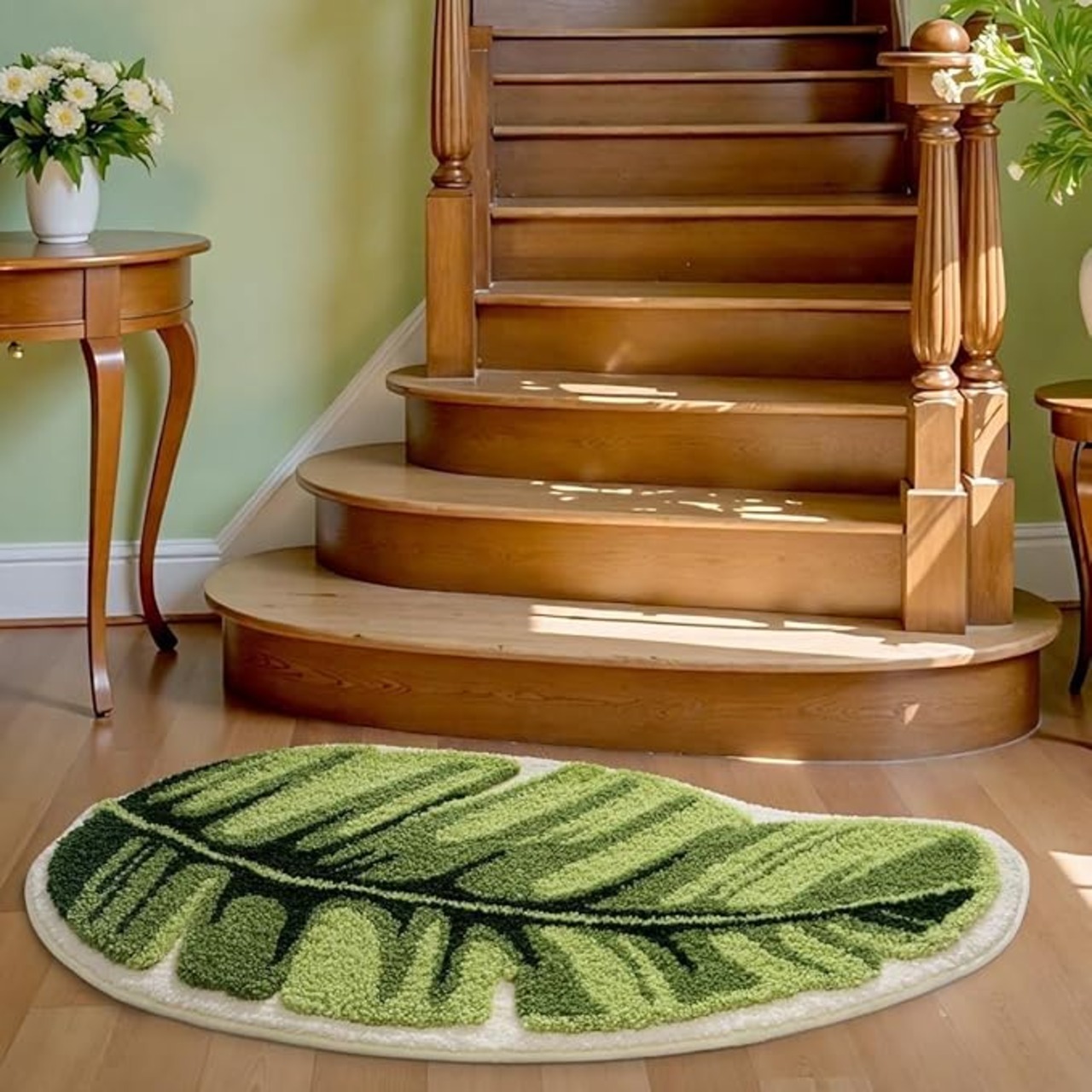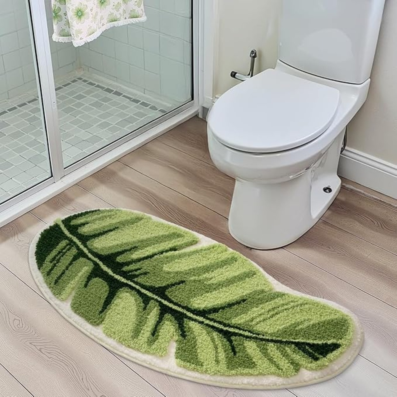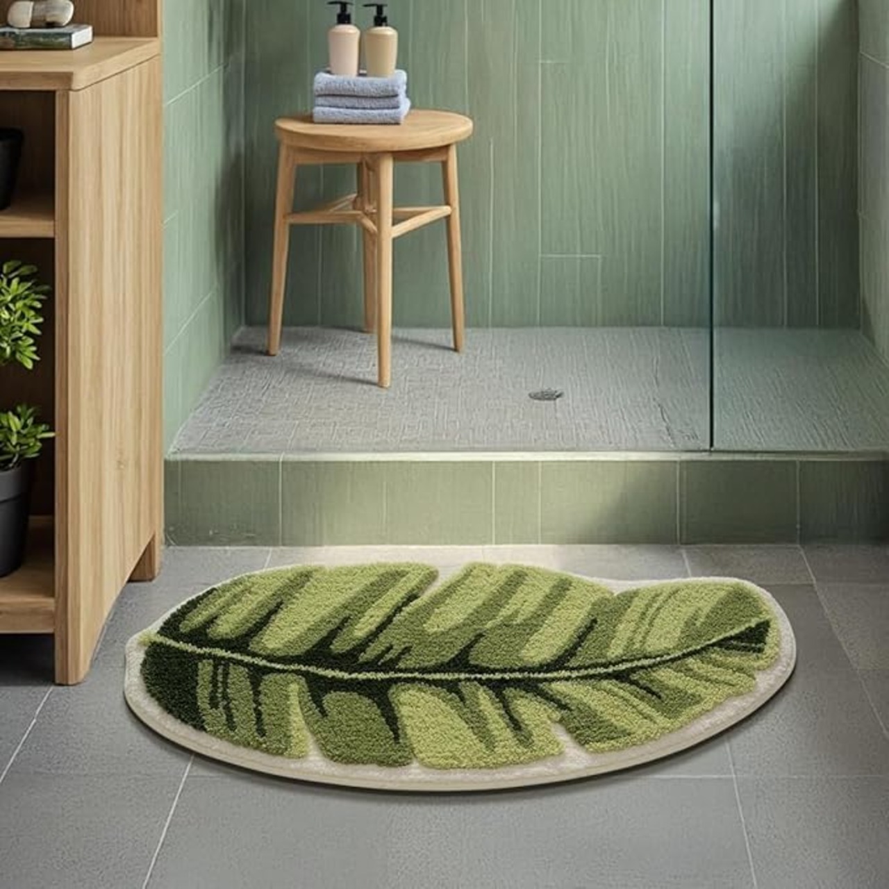 koundeneko お風呂マット 葉の形 ラグマット おしゃれ フワフワ 玄関マット 泥落とし 吸水 洗える カーペット お風呂 洗面所 トイレ 浴室 ベッドサイド 夏 ハワイアン パーティー飾り