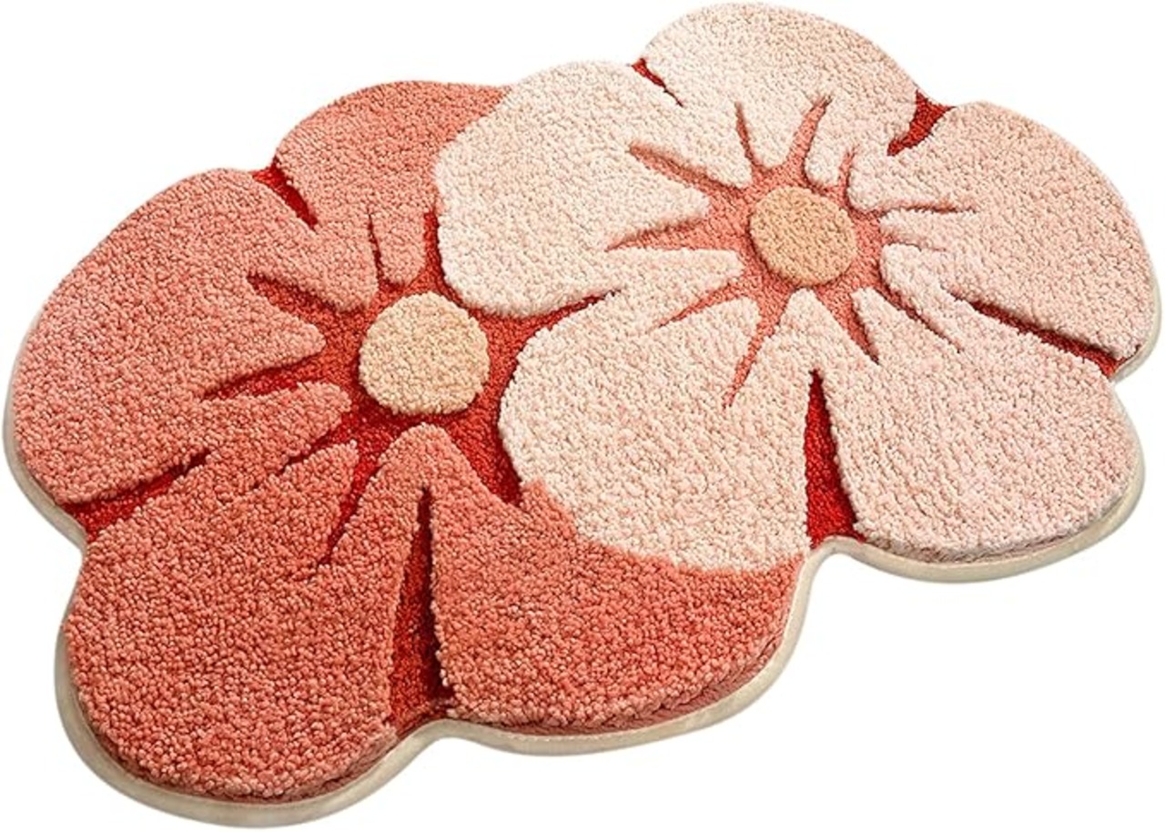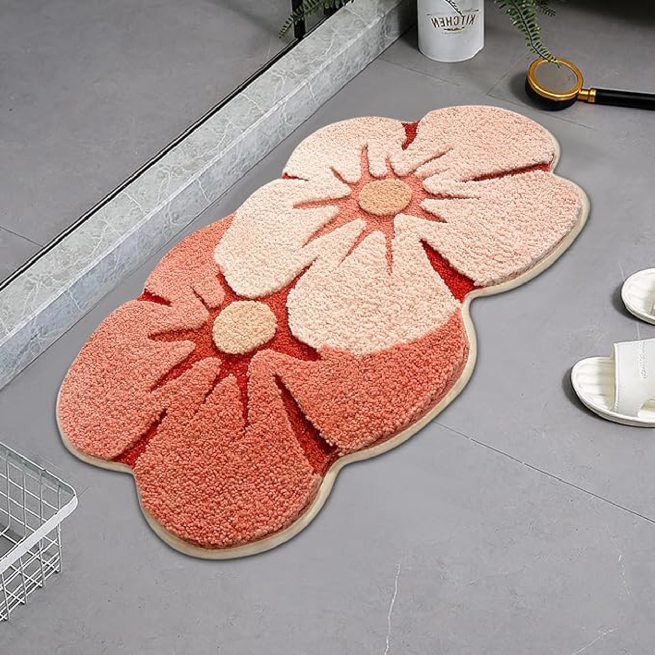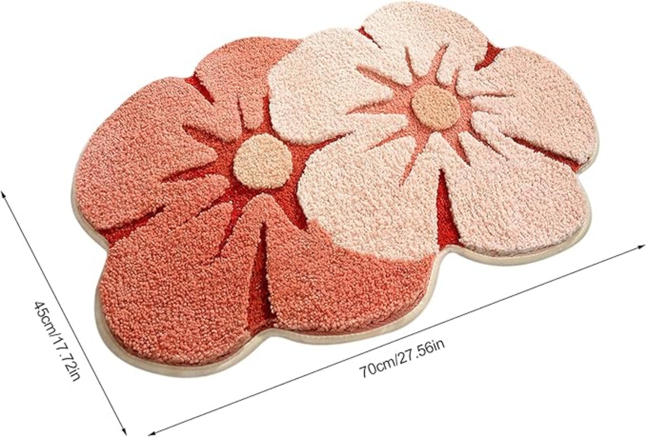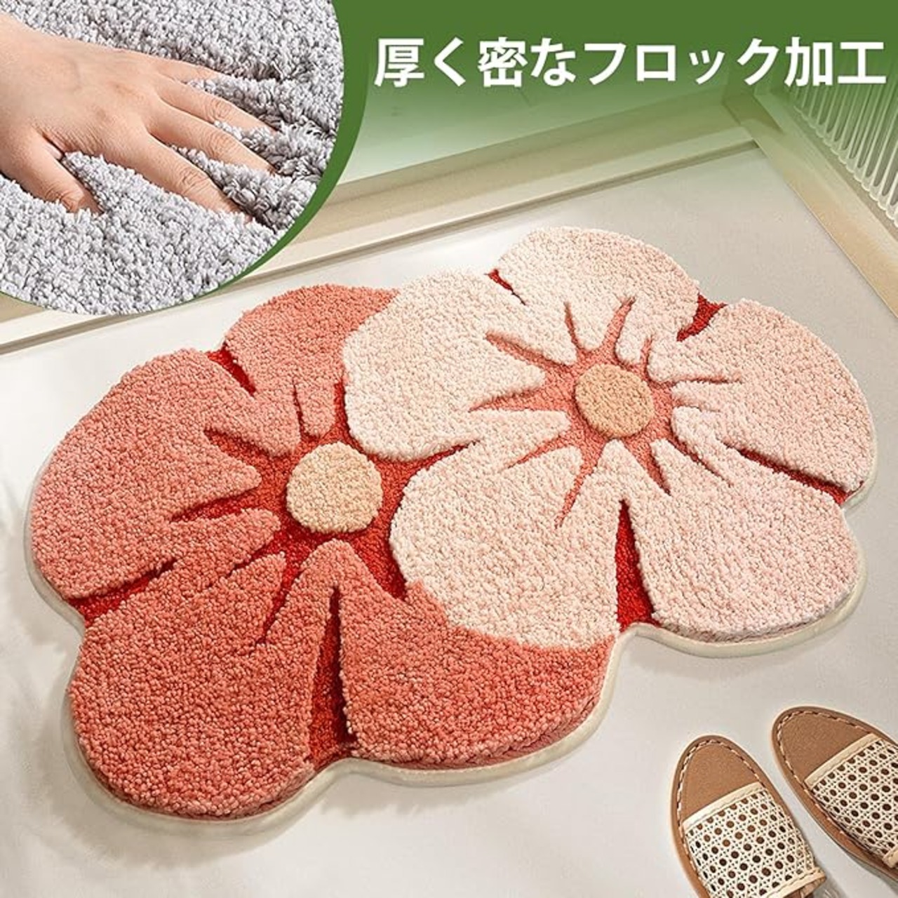 バスマット 強吸水 速乾 洗える 足拭きマット 防滑 滑り止め 厚手 ふわふわ 洗濯可能 浴室/洗面所/トイレ/お風呂用 植毛フロア ポリエステル 極細繊 柔らか ソフト 小清新デザイン 45 70cm 雲形 かわいい おしゃれ (花)