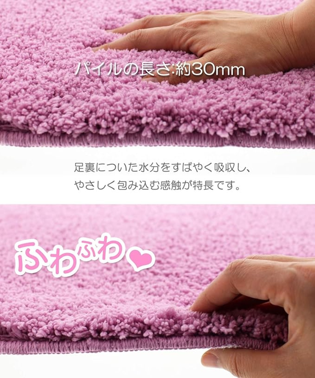 ●バツグンの吸水性と足裏を包み込むボリュームが快適! バスマット