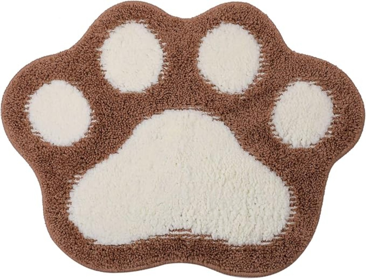 ISEFUJI 玄関マット バス 足ふき お風呂 肉球 猫足 ネコ 猫 吸水速乾 洗える マイクロファイバー 厚手 かわいい (ブラウン, 凹)