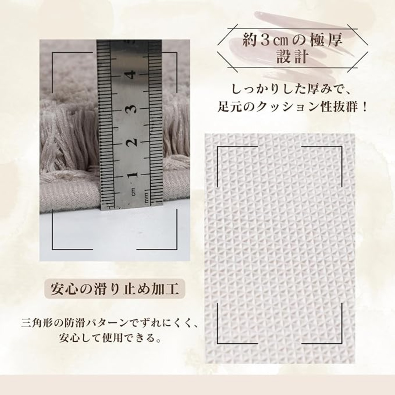 【滑り止め加工で安全設計】裏面には滑り止め加工が施され、地面にしっかりフィット。耐摩耗性のある素材で床を保護しながら、安全に使用できます。