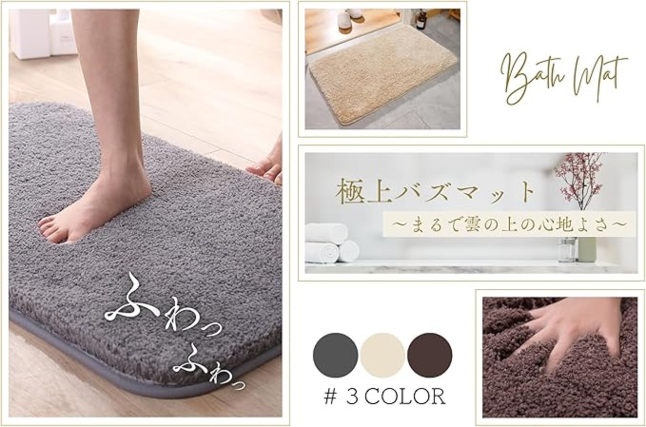 【ふわふわの心地よい肌触り】マイクロファイバー素材を使用したバスマットは、柔らかな肌触りと濃密な長毛で、足を包み込むような踏み心地を実現。お風呂上がりのリラックスタイムに最適です。