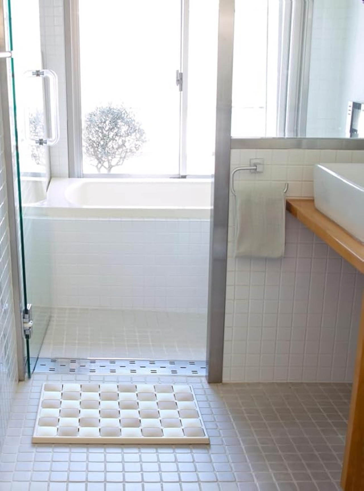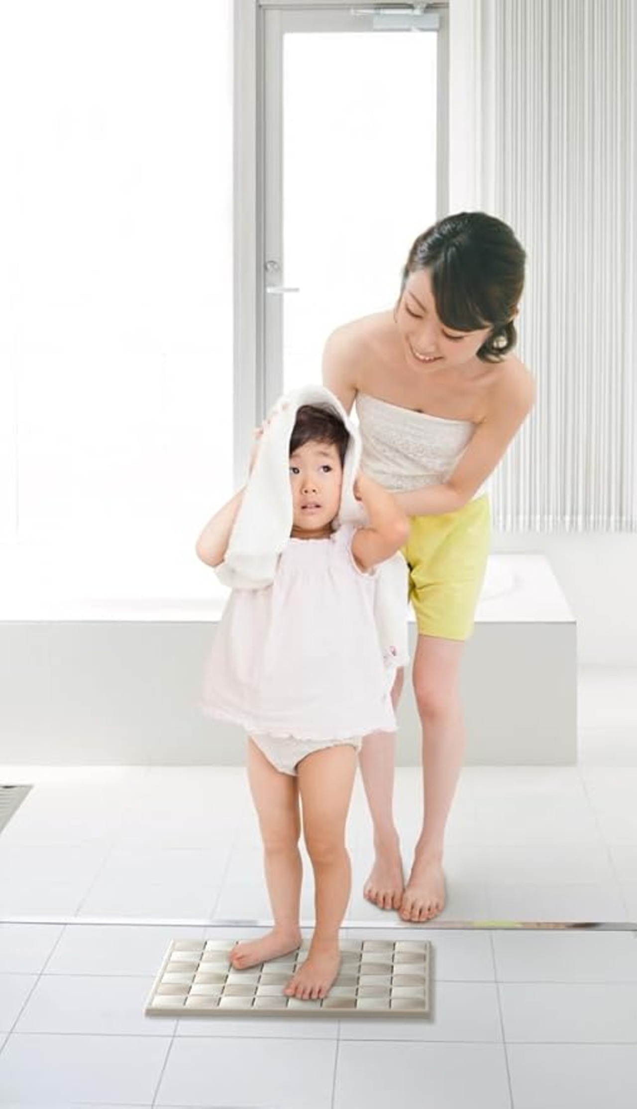 ○圧倒的な吸水スピードを誇る珪藻土バスマット! ○ 丸洗い、天日干しできて衛生的。 ○アーチ型タイル形状で、のって気持ちいバスマットです。 商品サイズ(約) : W460 D340 H22mm 商品重量(約) : 1865g タイル : 珪藻土 フレーム・固定クリップ : ポリプロピレン(PP) (耐熱温度 : 120℃/耐冷温度 : -20℃) 滑り止めシート : EVA樹脂 (耐熱温度 : 60℃/耐冷温度 : -20℃) 生産国 : 中国