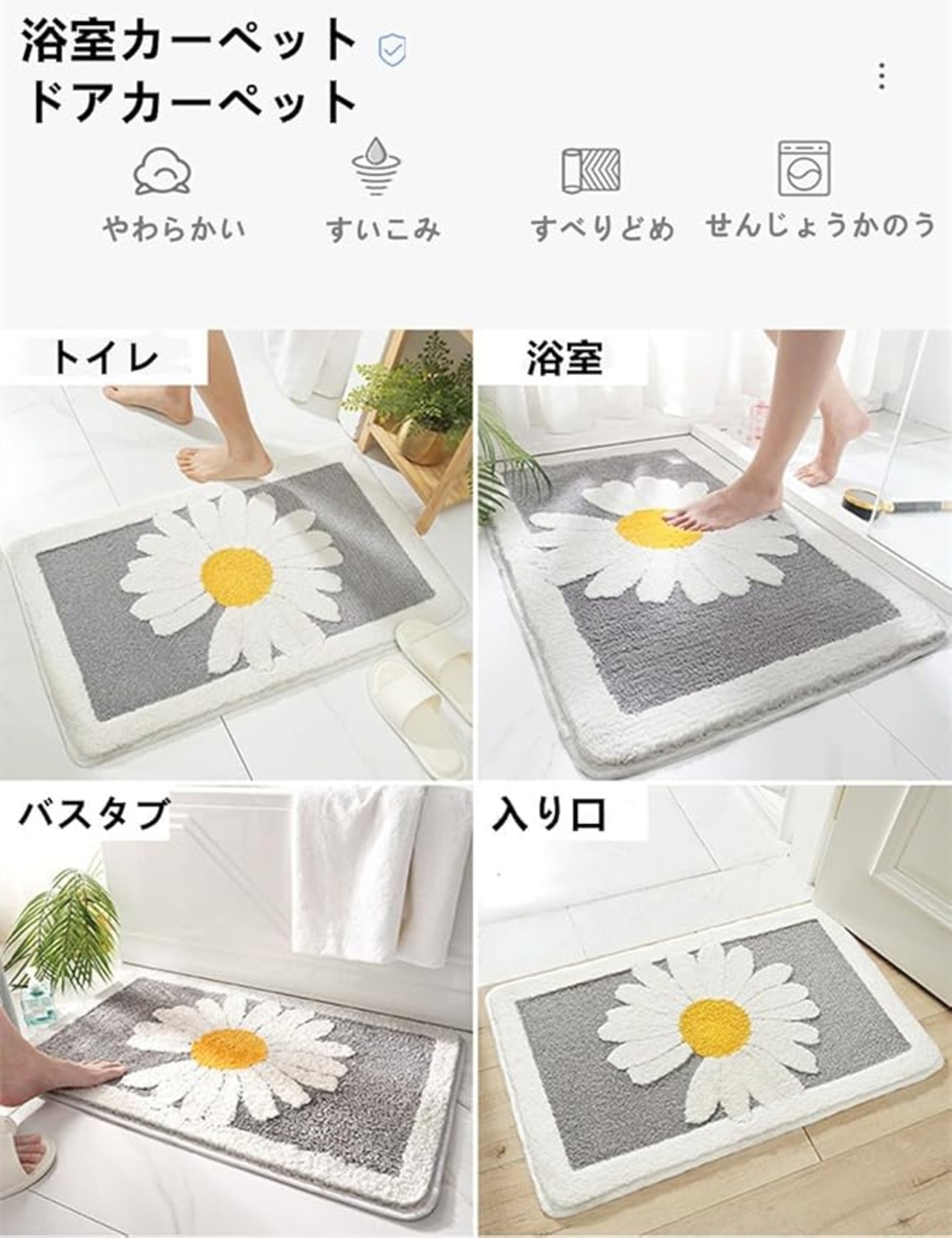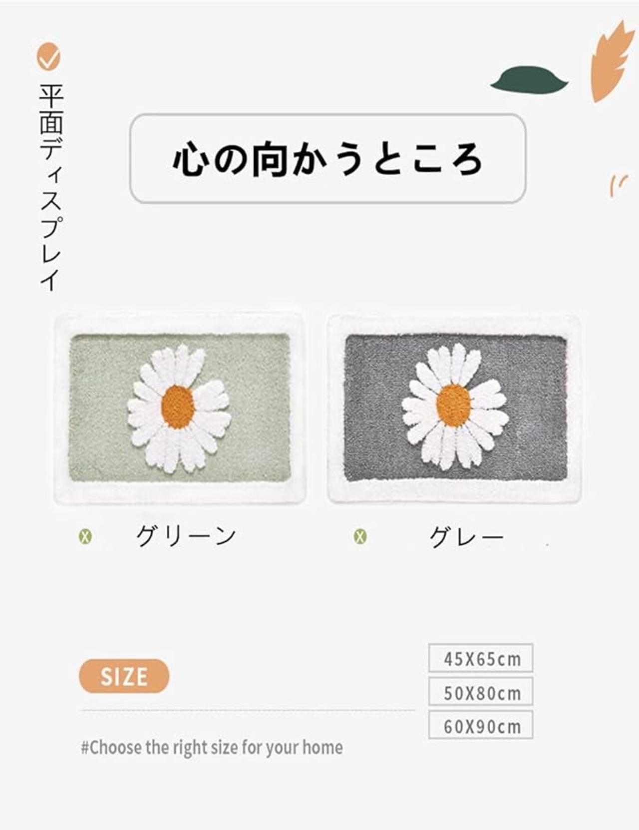 【商品仕様】40 60cm・50 80cm。2つのサイズが用意されており、必要に応じて選ぶことができます。表面にはマイクロファイバー材料を使用し、表面繊維には複数の吸水孔があり、瞬間的に水分を吸収することができ、より高価なTPRゴムを下層材料(PVCや普通のゴムではない)として使用し、バスマットはより丈夫で耐久性があり、使用時間はより長い。多色展開で色も良く、地方の雰囲気が一気にバスマットファッションに!美しく豊かな装飾感を与え、家族に魅力的で美しい雰囲気を与えます。