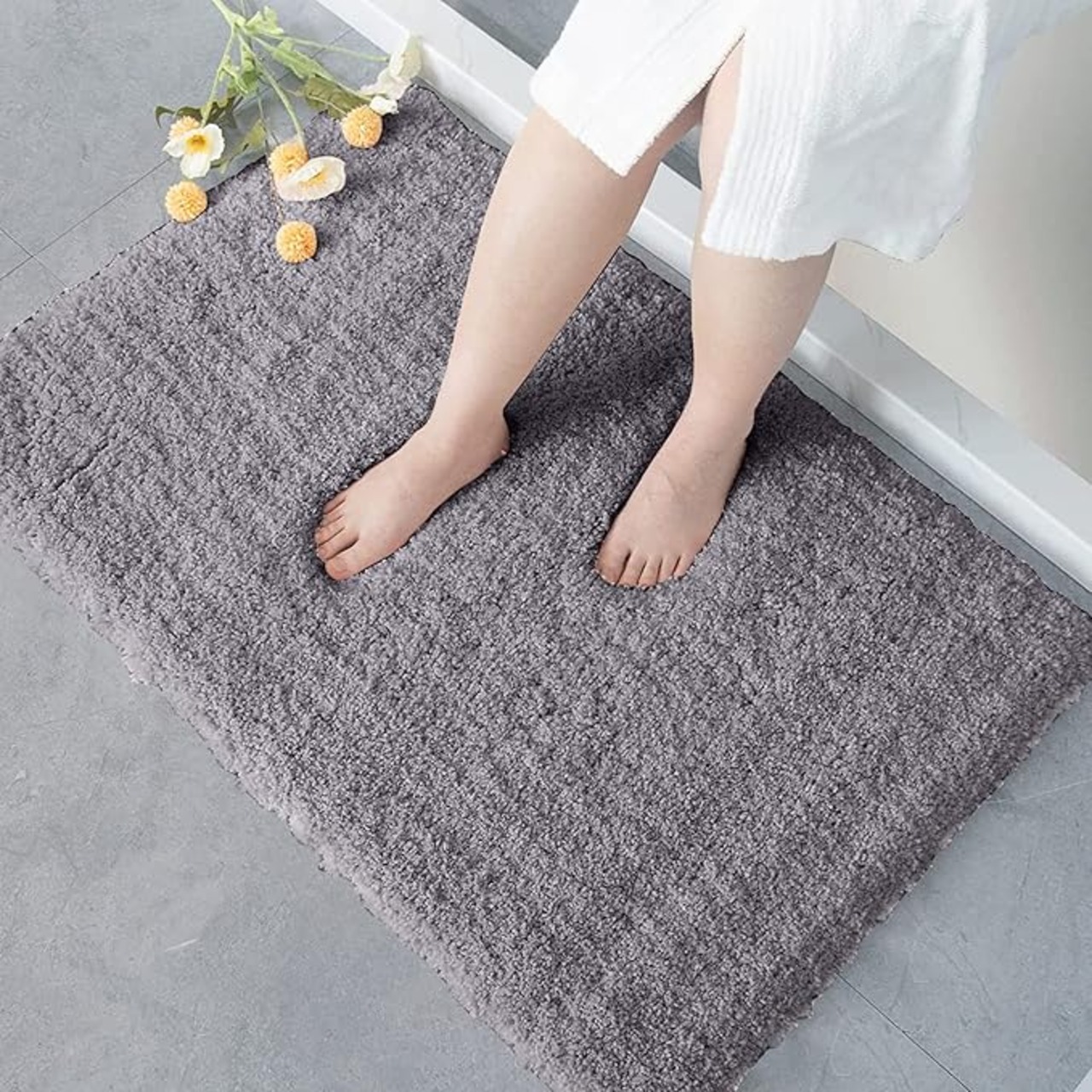 HOSUR バスマット 玄関マット 足ふきマット ドアマット お風呂マット 足拭きマット キッチンマット 階段マット 滑り止め 速乾 サラサラ 吸水 丸洗い 浴室 洗面所 脱衣所 バス用品 (グレー, 50*80cm)