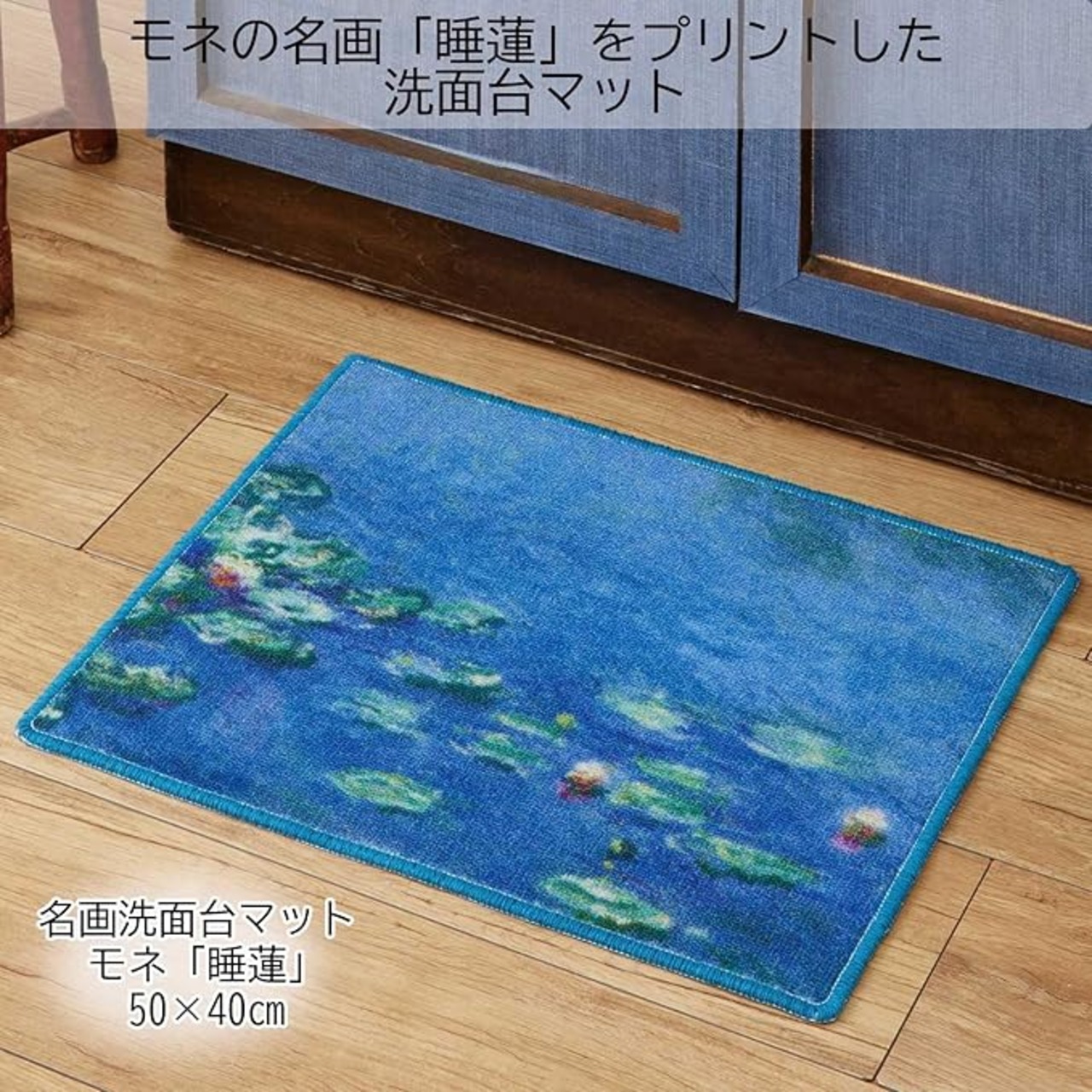 平津産業(Hiratsu Sangyo) 名画 洗面台マット モネ 睡蓮 50 40㎝ 日本製 滑りにくい加工 洗える おしゃれ 大判 北欧 お風呂 浴室 かわいい 足ふき ドア 掃除 室内 大きめ 92149900