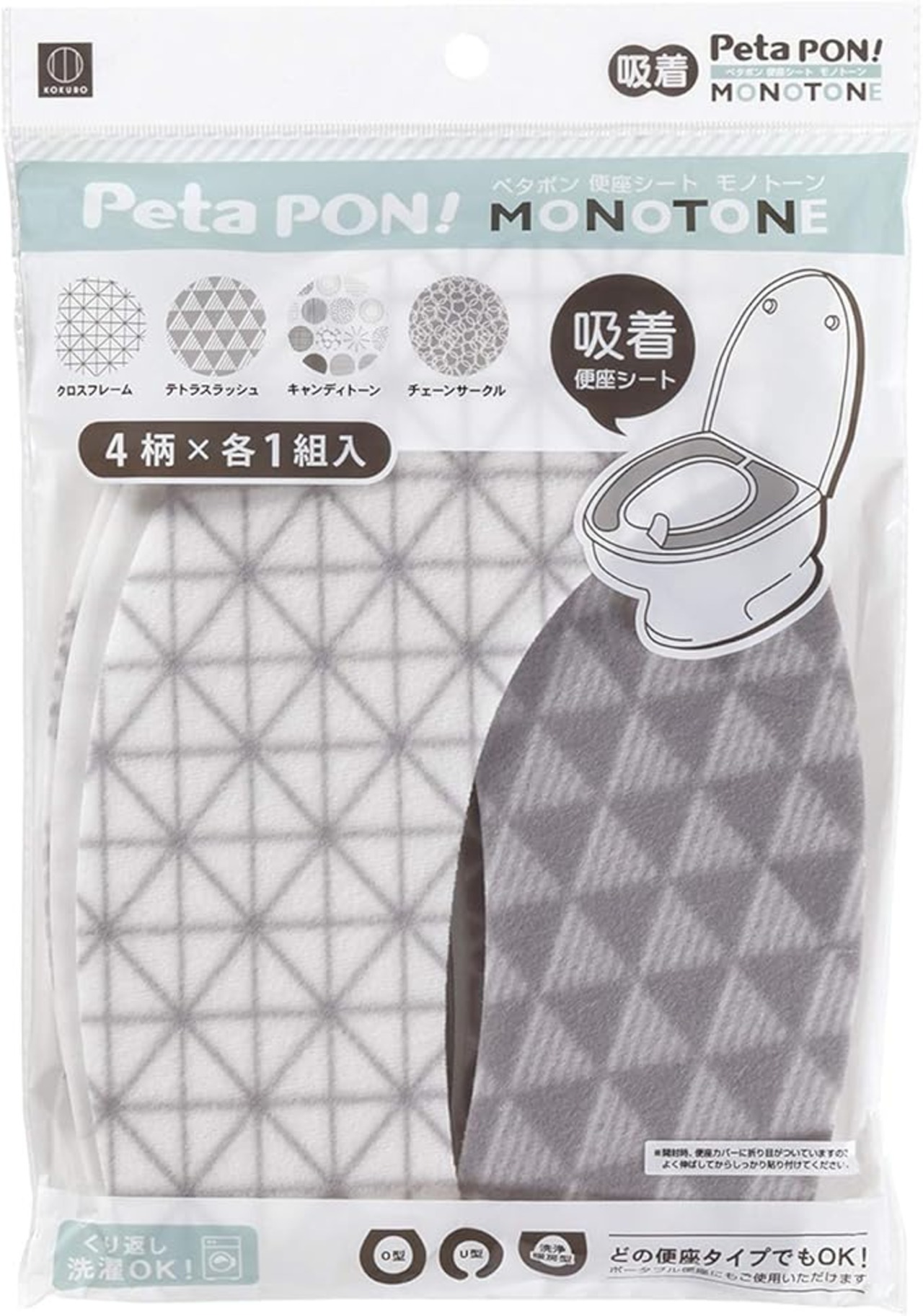 小久保工業所 ペタポン便座シート モノトーン (4柄 各1組入) 貼るタイプ (繰り返し使える/洗濯OK) 簡単 ズレない 吸着シート ふかふか