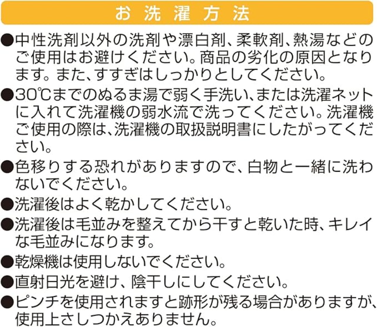 【お洗濯OK!繰り返しお使いいただけます】洗濯機で洗っていただけるので、衛生的かつ経済的に繰り返しご使用いただけます。お洗濯の際は中性洗剤以外の洗剤や漂白剤、柔軟剤、熱湯などのご使用は劣化の原因となりますのでお避けください。30度までのぬるま湯で弱い手洗い、または洗濯ネットに入れて洗濯機の弱水流で洗ってください。