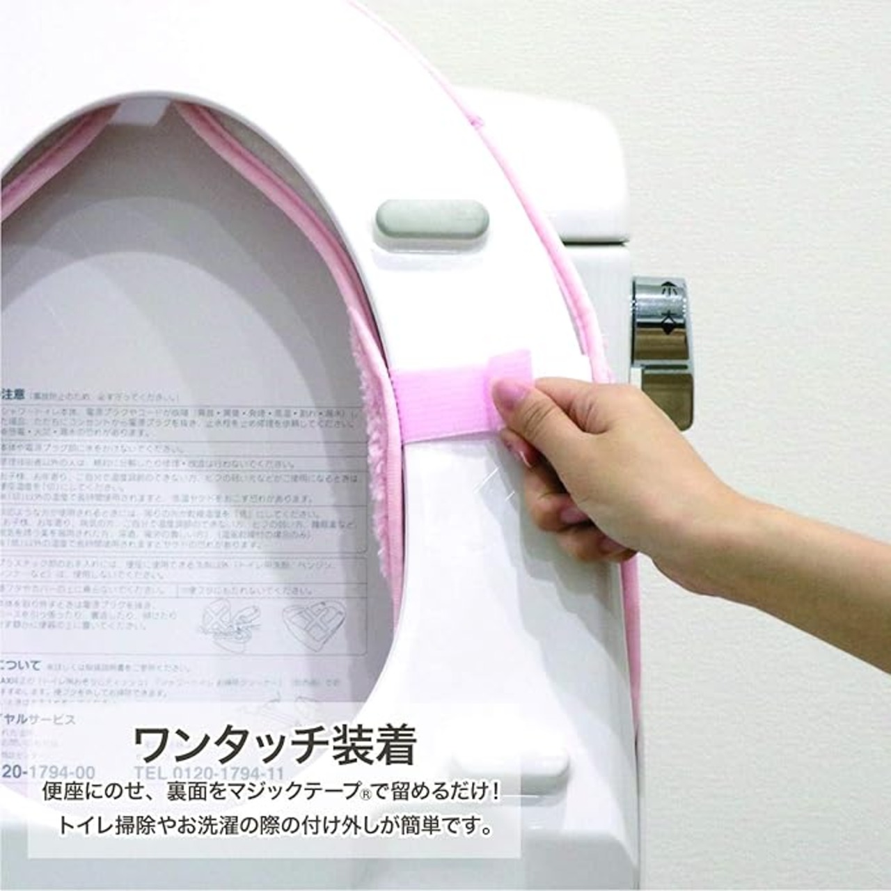 ●便座にのせて、裏面でマジックテープを留めるだけで、取り付け・取り外しが簡単。