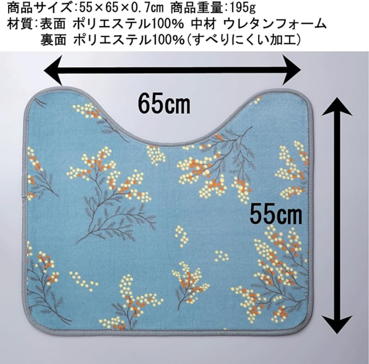 トップ産業(Top-sangyo) さらふわ トイレマット ミモザ ブルー 55 60㎝ すべり止め付き コンパクト 新生活 北欧 ふわふわ さらさら おしゃれ かわいい 92142000