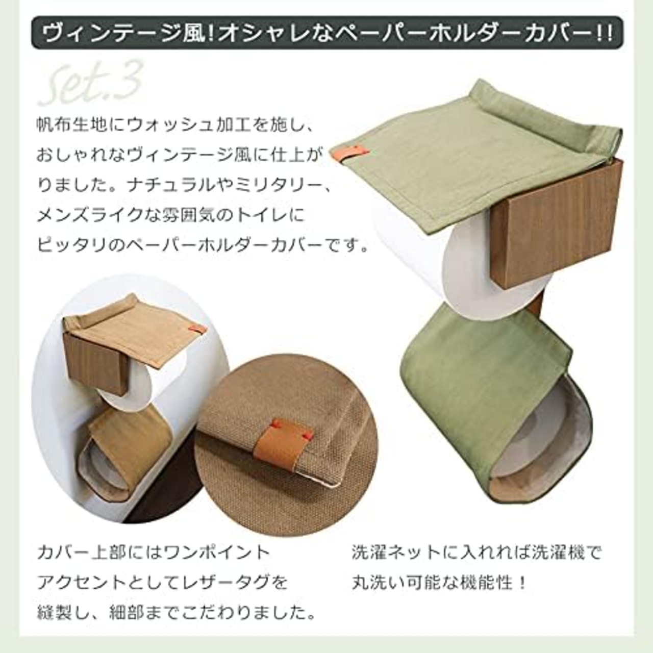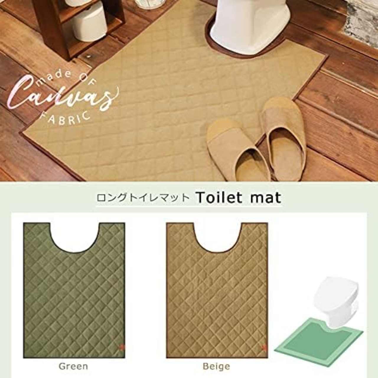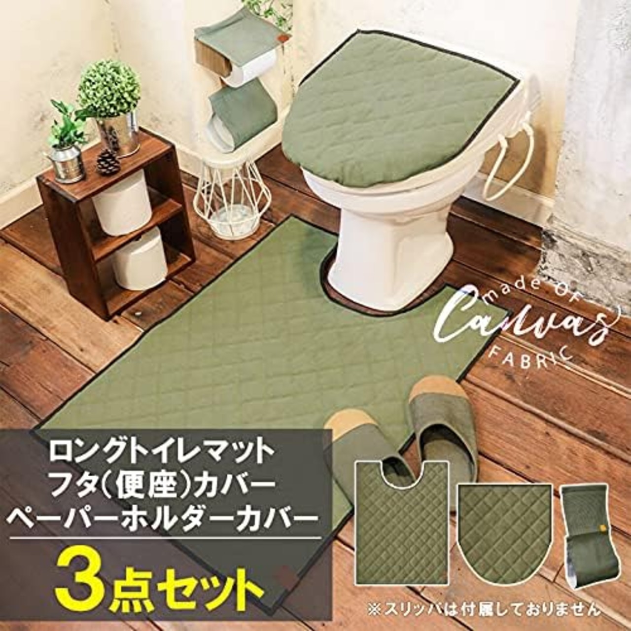 オカトー(OKATO) CANVAS キルティング トイレ3点セット ロングトイレマット 便座カバー フタカバー ペーパーホルダーカバー おしゃれ 洗える シンプル 無地 兼用 おくなが キャンバス ビンテージ ヴィンテージ O型 U型 兼用 (ベージュ)