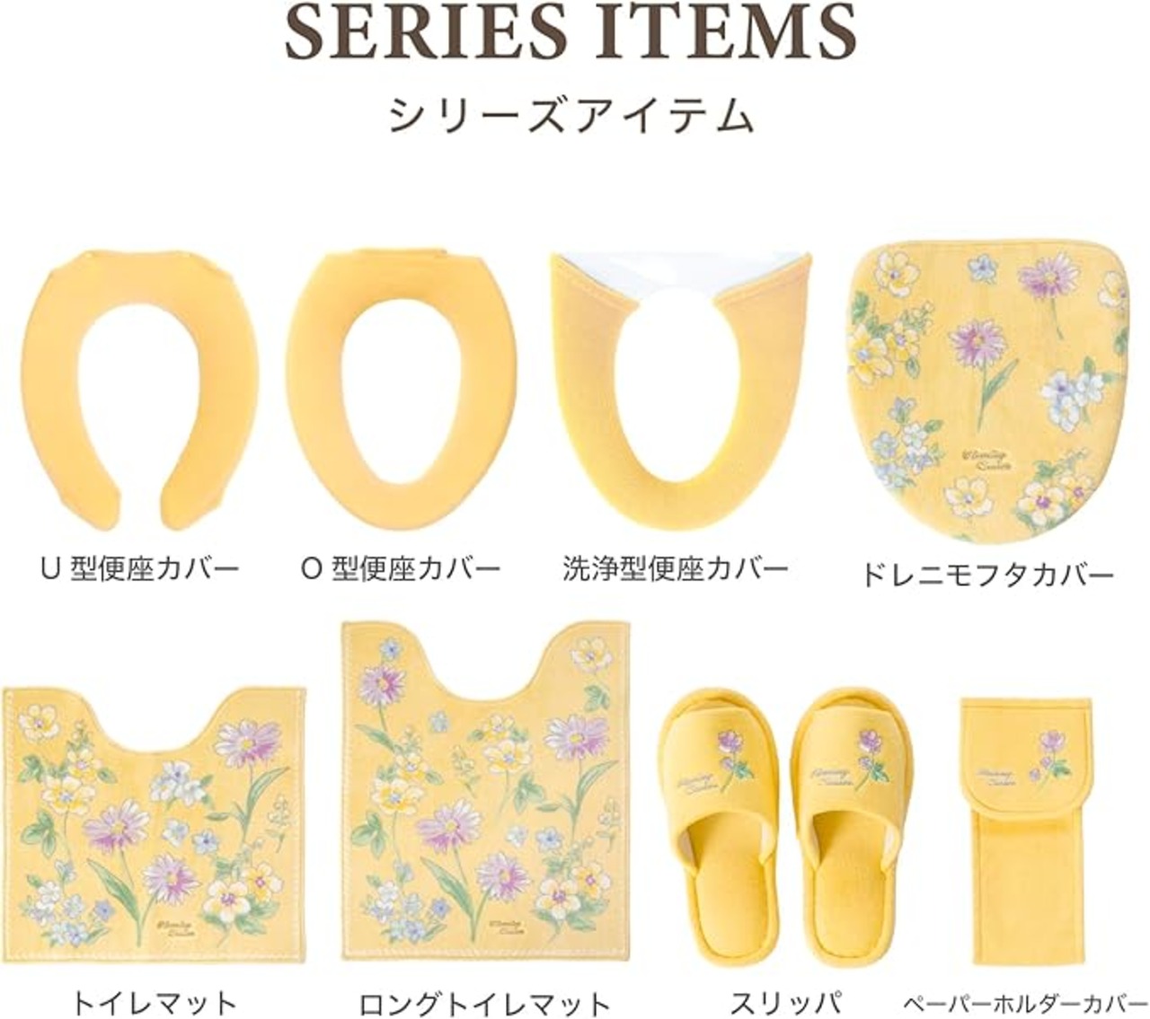 オカ(OKA) ブルーミングシーズン トイレフタカバー ドレニモタイプ(O・U・洗浄・暖房 兼用) イエロー (日本製 抗菌 防臭 洗える 吸着 貼る 花柄 ボタニカル 普通型兼用)