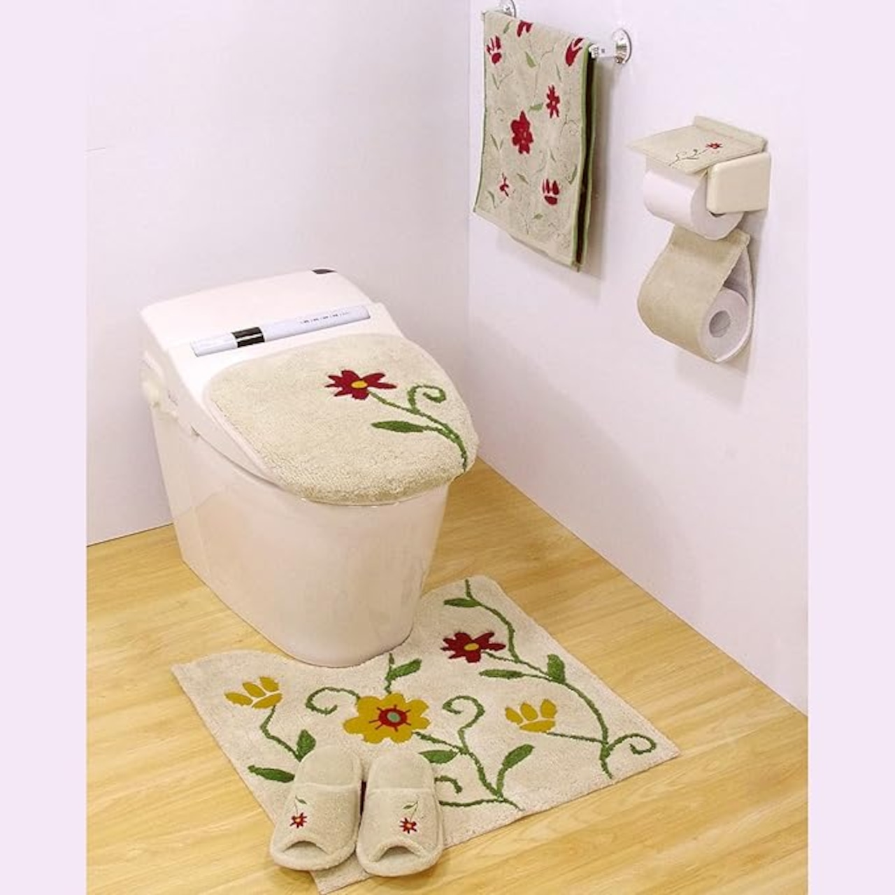 sybilla フラワーガーデン トイレふたカバー 吸着シート付き 普通用・洗浄用兼用タイプ ベージュ 16671