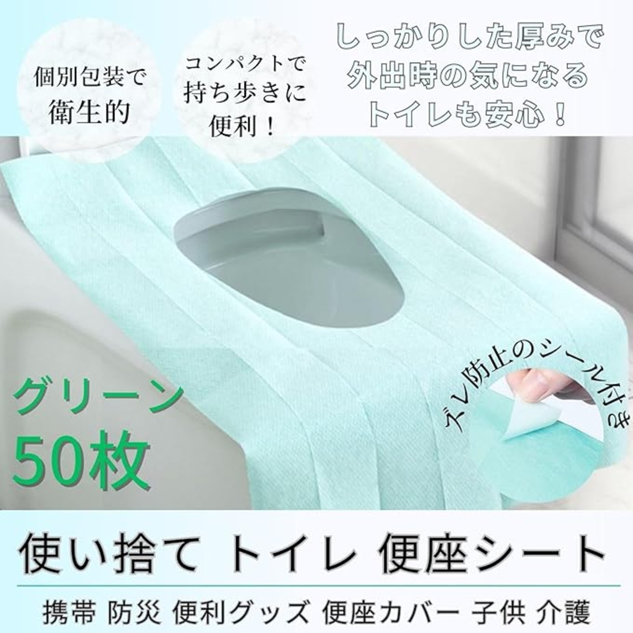 bath&bath 使い捨て 便座シート 介護 大き目サイズ 非常用 病院 (グリーン50枚)