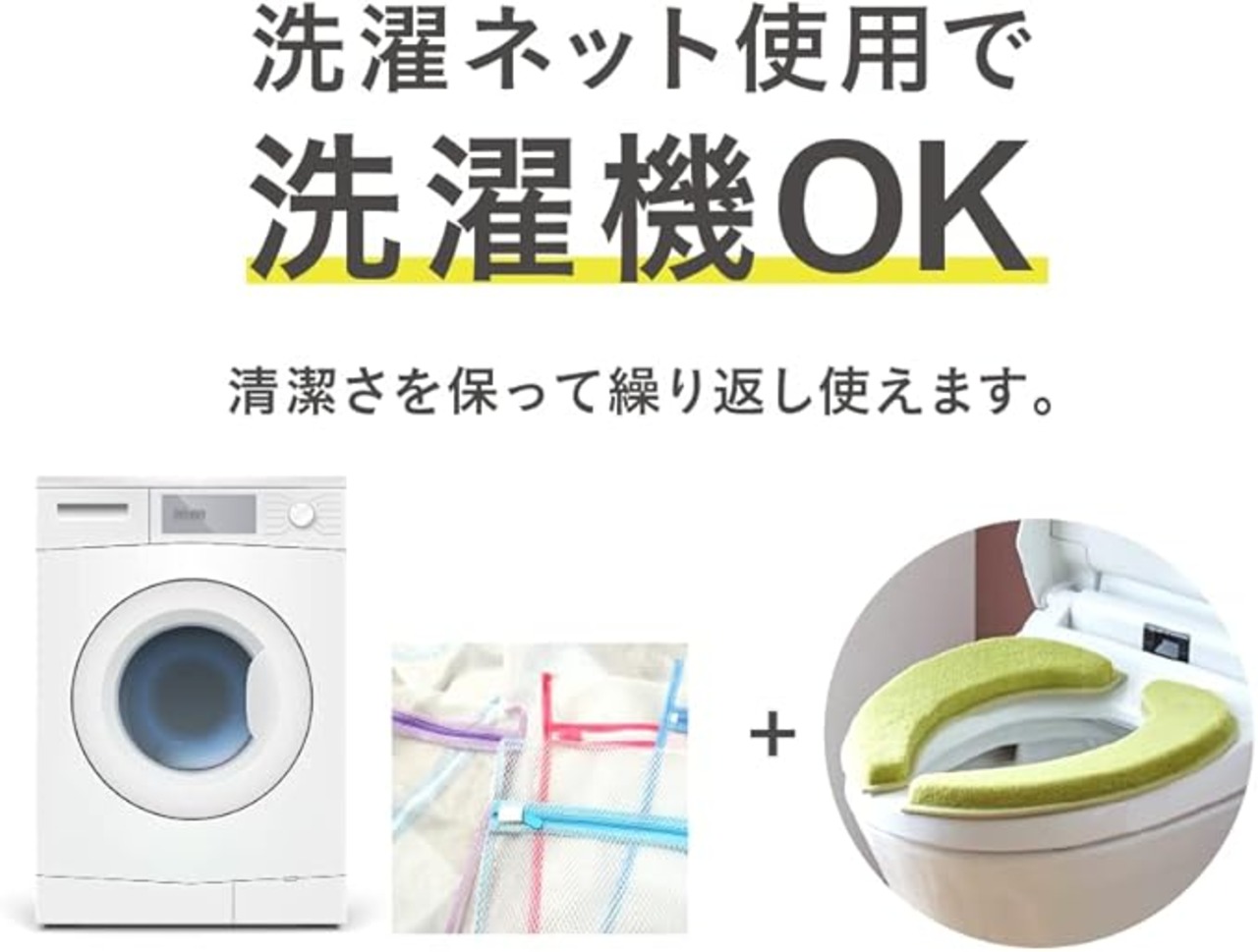 【取り付け・お手入れ簡単】便座に置くだけでピタッと吸着。ズレません。着脱が簡単。どのタイプの便座にも使用できます。(洗浄暖房型・O型・U型)洗濯機OK!繰り返し洗っても型崩れしにくい。吸着面にはアンモニア消臭効果があり、お手入れ簡単で清潔。