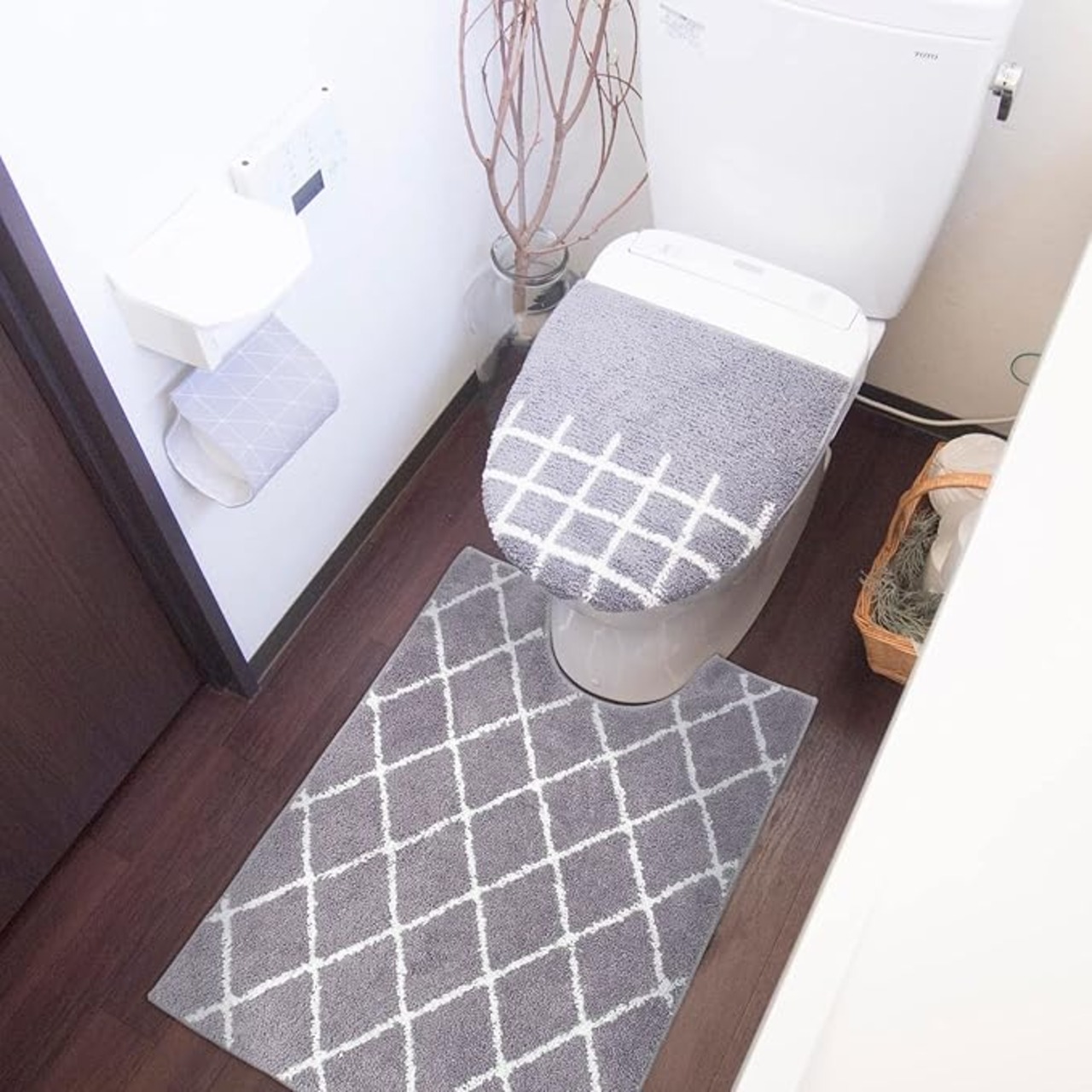 【モノトーンを基調とした、清潔感のあるファブリックのトイレマット】安心なすべり止め加工で、もちろんお洗濯可能。